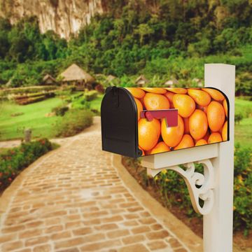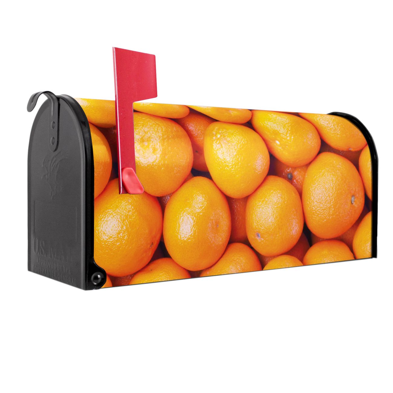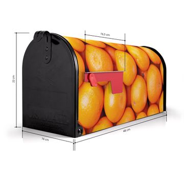 Der amerikanische Briefkasten von banjado mit Orangen Motiv bietet Ihnen ausreichend Fassungsvermögen, um große A4 Sendungen und Zeitschriften zu empfangen. Die typisch amerikanische rote Fahne zeigt Ihnen an, wenn Sie Post erhalten haben. Die US-Mailbox besteht aus verzinktem Stahlblech welches lackiert wurde und ist 48 x 22 x 16 CM (BxHxT) groß. Die Folie mit Motiv Orangen besteht aus einer wetter- und UV-resistenten Folie, die mit einem Schutzlaminat überzogen ist, sodass die US Mailbox zusätzlich vor Kratzern geschützt ist. An der Unterkante sind 4 Löcher je Seite um die Mailbox, typisch amerikanisch, an einem Holzpfahl oder einem Zaun zu befestigen. Auf Wunsch können Sie bei uns den passenden Standfuß oder die passende Wandhalterung kaufen um die US-Mailbox sicher zu befestigen. Wir bieten Ihnen ebenfalls Namensschilder, bereits beschriftet oder frei zu beschriften, und verschiedene selbst gestaltete Bitte-Keine-Werbung-Aufkleber.