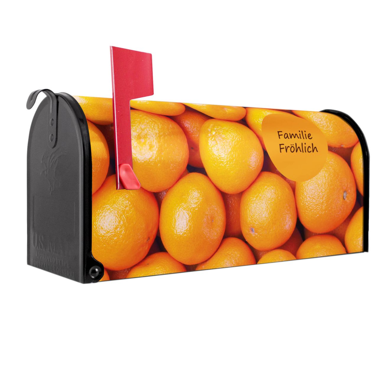 Unser amerikanischer Briefkasten mit dem Motiv Orangen hat ein sehr ansprechendes und ausgefallenes Design, ist in der Grundfarbe weiß, grün oder schwarz erhältlich. Damit entlocken Sie Ihren Nachbarn und dem Postboten immer wieder ein Lächeln. Die Mailbox ist ein Original Import aus Mississippi USA und wird von unserer kleinen Manufaktur in Sachsen von Hand veredelt. Die US-Mailbox bietet ausreichend Platz auch für große Sendungen, eine Fahne die Ihnen Post anzeigt, wetterfestes und äußerst stabiles Material - so macht Post empfangen Freude.