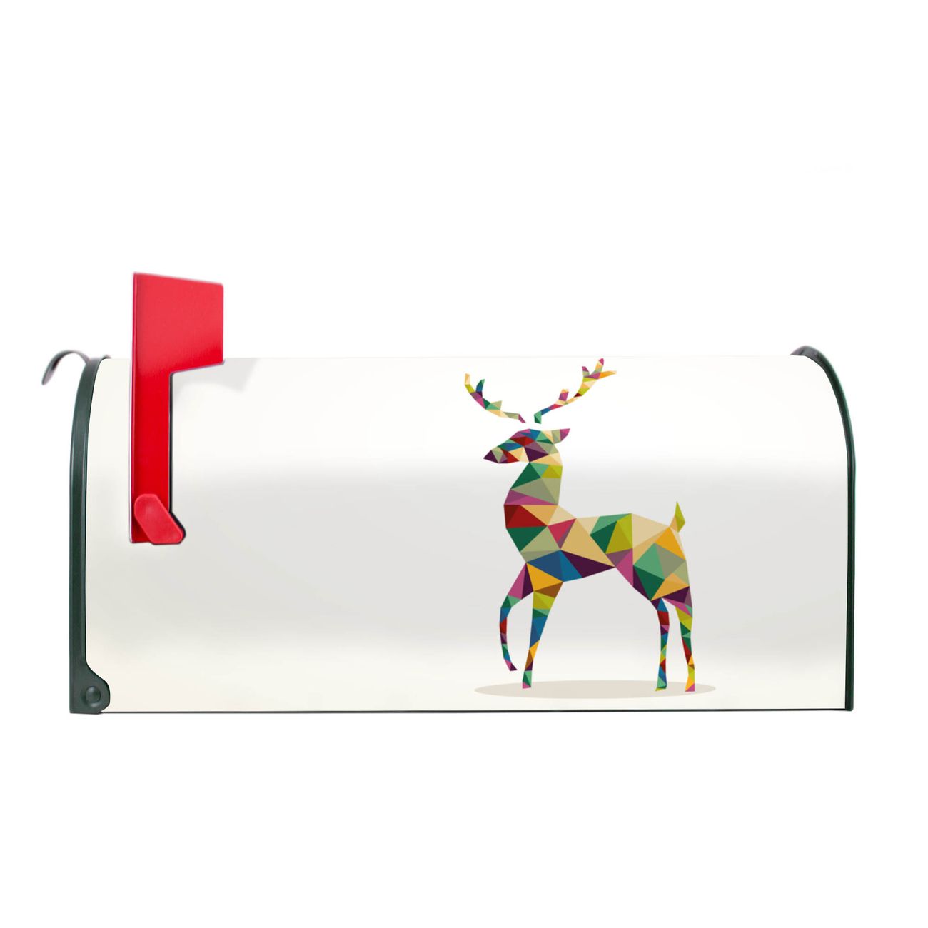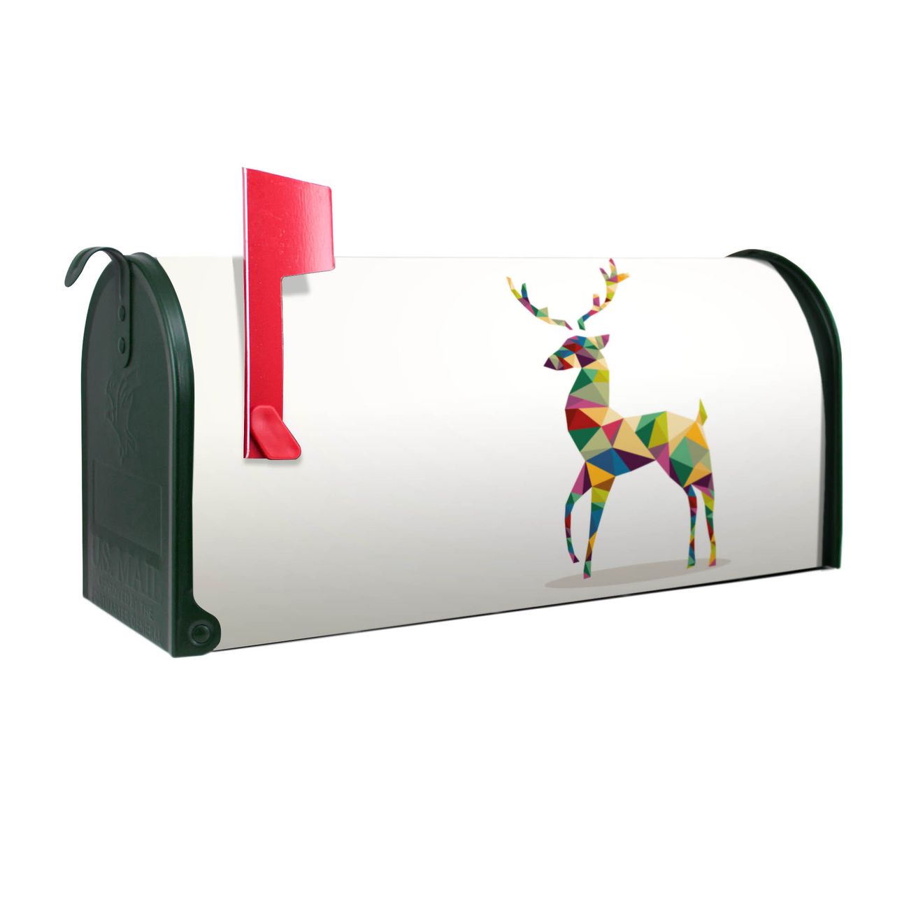 Unser amerikanischer Briefkasten mit dem Motiv Origami Hirsch hat ein sehr ansprechendes und ausgefallenes Design, ist in der Grundfarbe weiß, grün oder schwarz erhältlich. Damit entlocken Sie Ihren Nachbarn und dem Postboten immer wieder ein Lächeln. Die Mailbox ist ein Original Import aus Mississippi USA und wird von unserer kleinen Manufaktur in Sachsen von Hand veredelt. Die US-Mailbox bietet ausreichend Platz auch für große Sendungen, eine Fahne die Ihnen Post anzeigt, wetterfestes und äußerst stabiles Material - so macht Post empfangen Freude.
