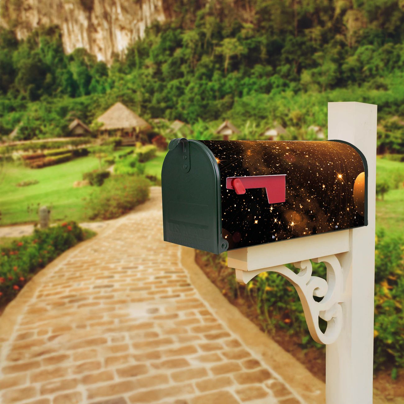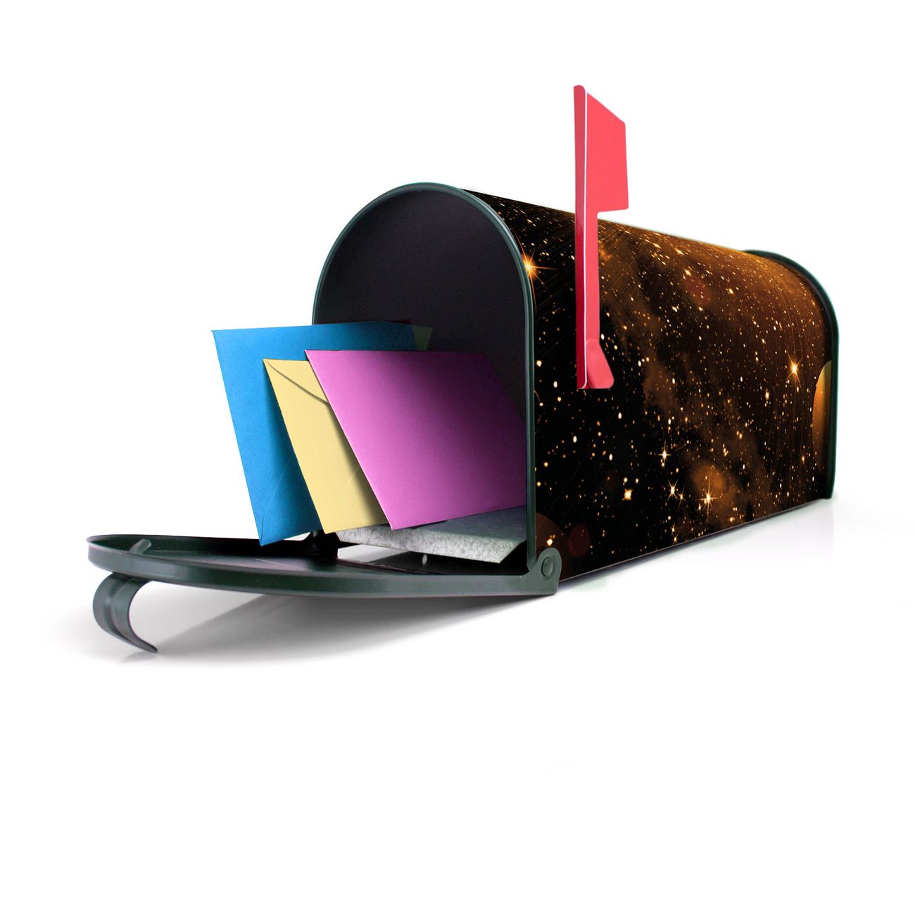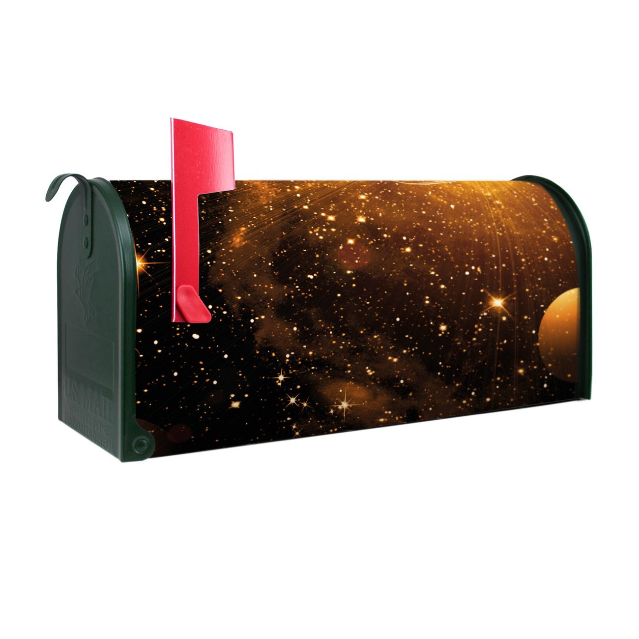 Unser amerikanischer Briefkasten mit dem Motiv Outer Space hat ein sehr ansprechendes und ausgefallenes Design, ist in der Grundfarbe weiß, grün oder schwarz erhältlich. Damit entlocken Sie Ihren Nachbarn und dem Postboten immer wieder ein Lächeln. Die Mailbox ist ein Original Import aus Mississippi USA und wird von unserer kleinen Manufaktur in Sachsen von Hand veredelt. Die US-Mailbox bietet ausreichend Platz auch für große Sendungen, eine Fahne die Ihnen Post anzeigt, wetterfestes und äußerst stabiles Material - so macht Post empfangen Freude.