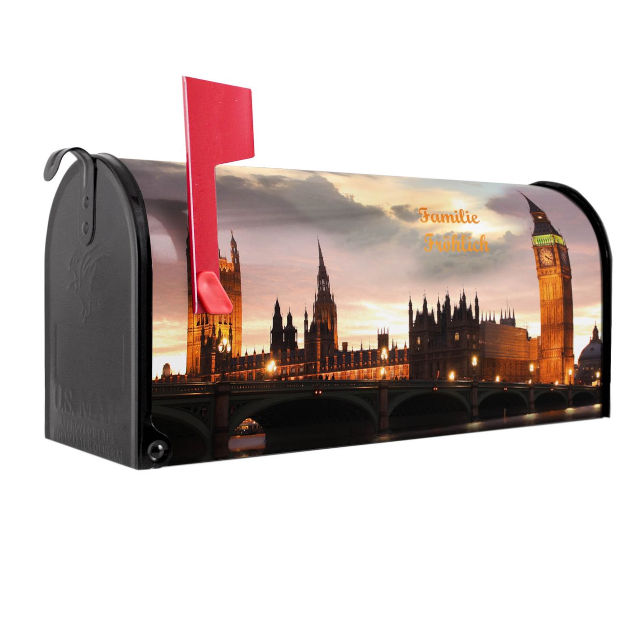 Unser amerikanischer Briefkasten mit dem Motiv Palace of Westminster hat ein sehr ansprechendes und ausgefallenes Design, ist in der Grundfarbe weiß, grün oder schwarz erhältlich. Damit entlocken Sie Ihren Nachbarn und dem Postboten immer wieder ein Lächeln. Die Mailbox ist ein Original Import aus Mississippi USA und wird von unserer kleinen Manufaktur in Sachsen von Hand veredelt. Die US-Mailbox bietet ausreichend Platz auch für große Sendungen, eine Fahne die Ihnen Post anzeigt, wetterfestes und äußerst stabiles Material - so macht Post empfangen Freude.