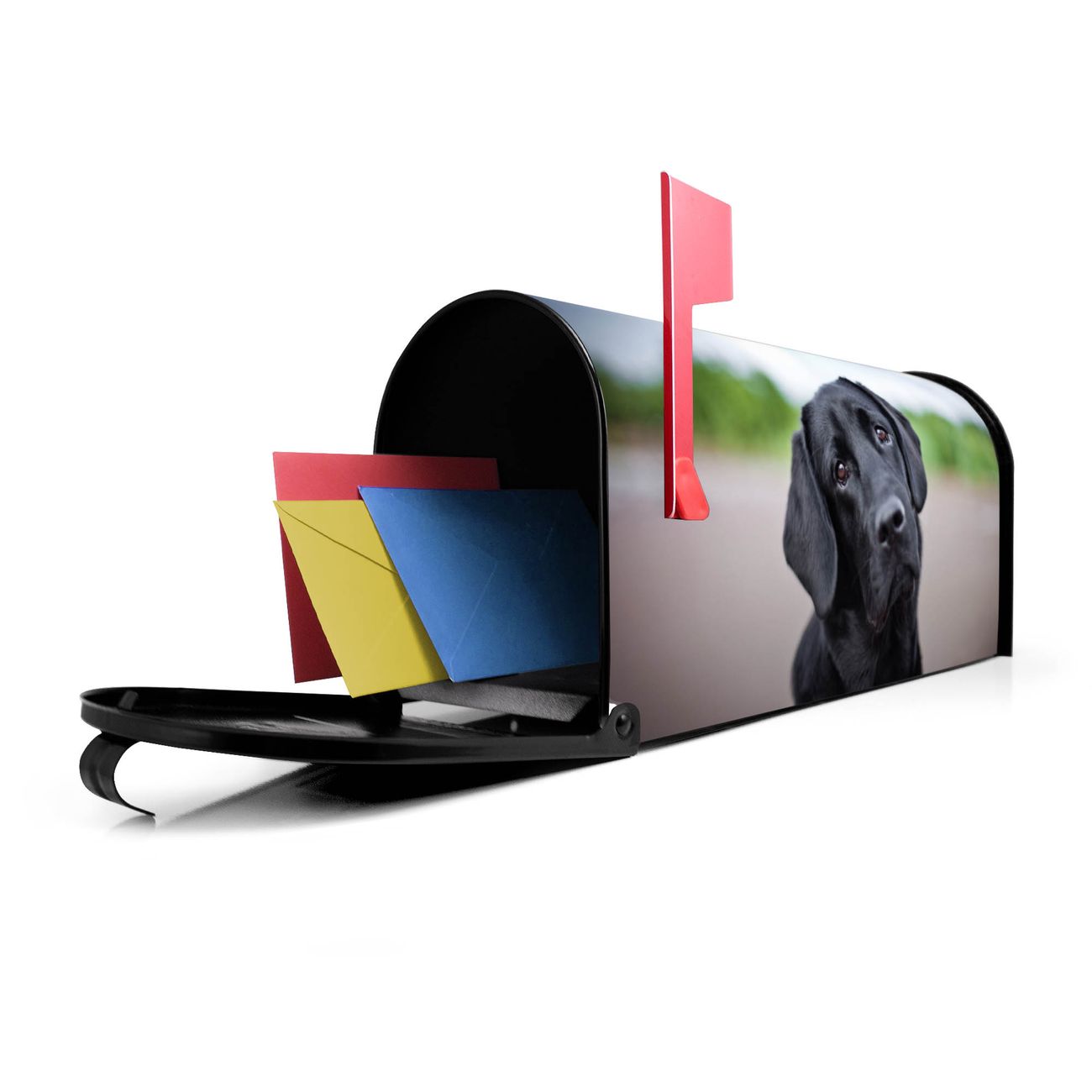 Der amerikanische Briefkasten von banjado mit Paolo Motiv bietet Ihnen ausreichend Fassungsvermögen, um große A4 Sendungen und Zeitschriften zu empfangen. Die typisch amerikanische rote Fahne zeigt Ihnen an, wenn Sie Post erhalten haben. Die US-Mailbox besteht aus verzinktem Stahlblech welches lackiert wurde und ist 48 x 22 x 16 CM (BxHxT) groß. Die Folie mit Motiv Paolo besteht aus einer wetter- und UV-resistenten Folie, die mit einem Schutzlaminat überzogen ist, sodass die US Mailbox zusätzlich vor Kratzern geschützt ist. An der Unterkante sind 4 Löcher je Seite um die Mailbox, typisch amerikanisch, an einem Holzpfahl oder einem Zaun zu befestigen. Auf Wunsch können Sie bei uns den passenden Standfuß oder die passende Wandhalterung kaufen um die US-Mailbox sicher zu befestigen. Wir bieten Ihnen ebenfalls Namensschilder, bereits beschriftet oder frei zu beschriften, und verschiedene selbst gestaltete Bitte-Keine-Werbung-Aufkleber.