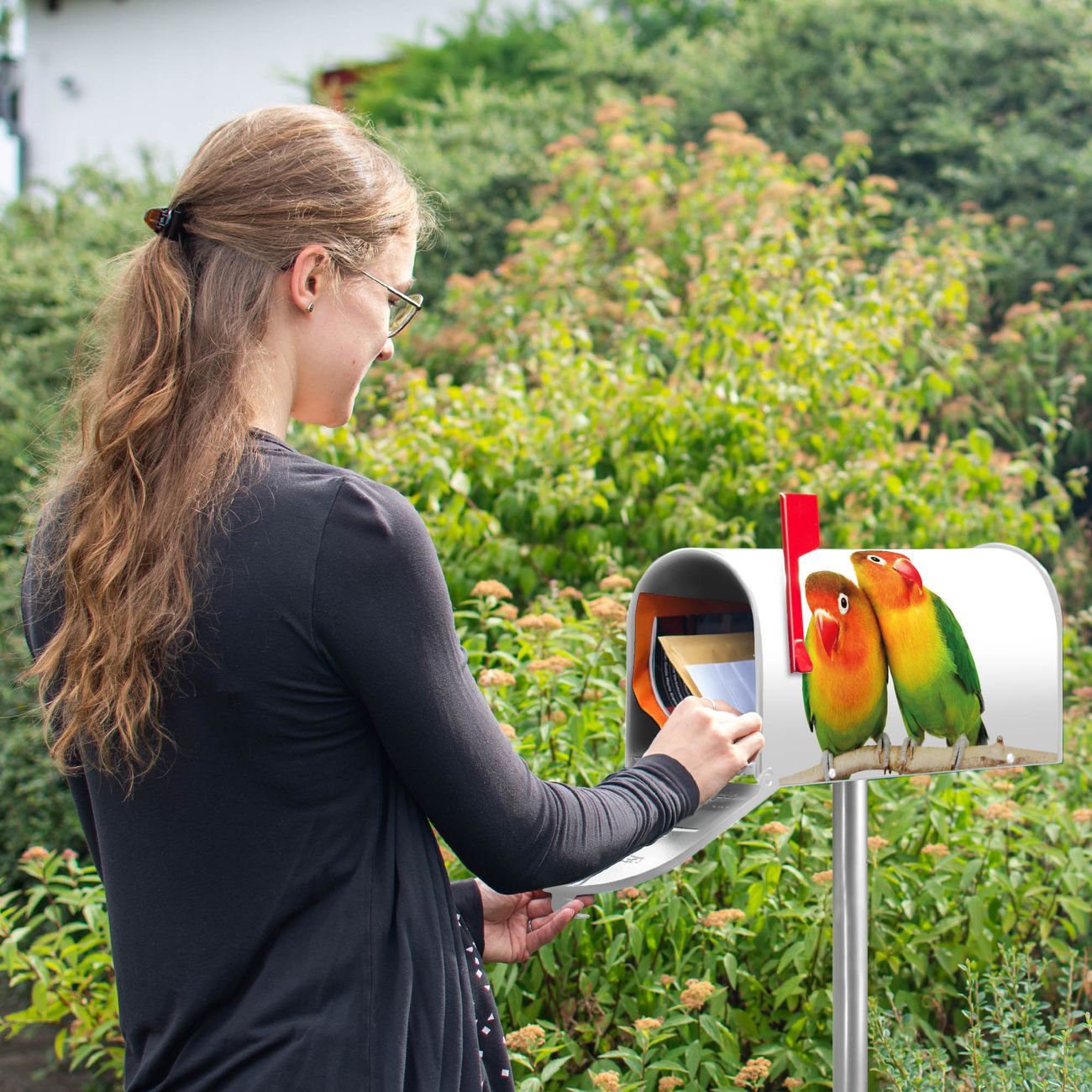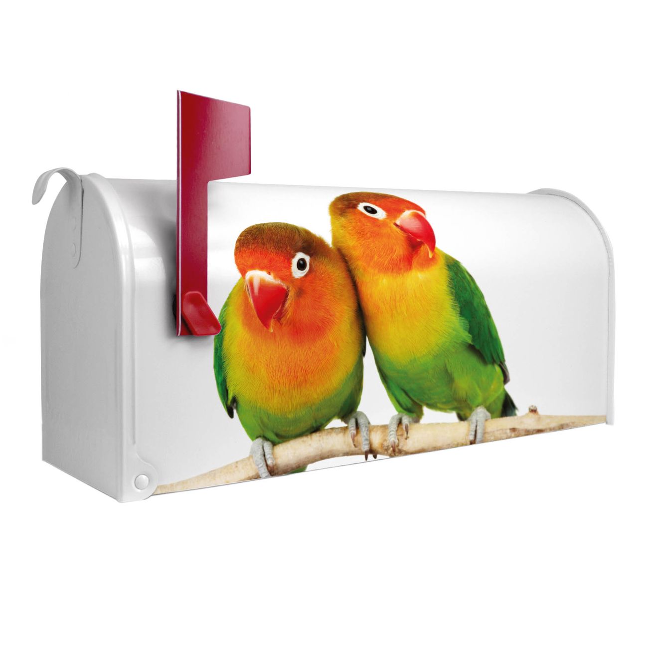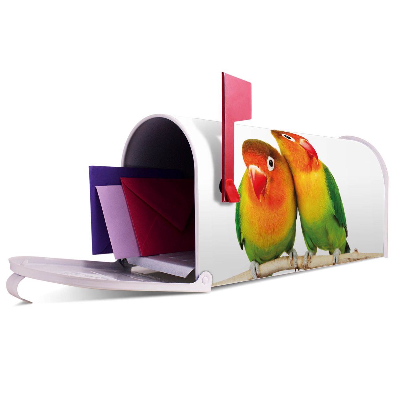 Unser amerikanischer Briefkasten mit dem Motiv Papageien hat ein sehr ansprechendes und ausgefallenes Design, ist in der Grundfarbe weiß, grün oder schwarz erhältlich. Damit entlocken Sie Ihren Nachbarn und dem Postboten immer wieder ein Lächeln. Die Mailbox ist ein Original Import aus Mississippi USA und wird von unserer kleinen Manufaktur in Sachsen von Hand veredelt. Die US-Mailbox bietet ausreichend Platz auch für große Sendungen, eine Fahne die Ihnen Post anzeigt, wetterfestes und äußerst stabiles Material - so macht Post empfangen Freude.