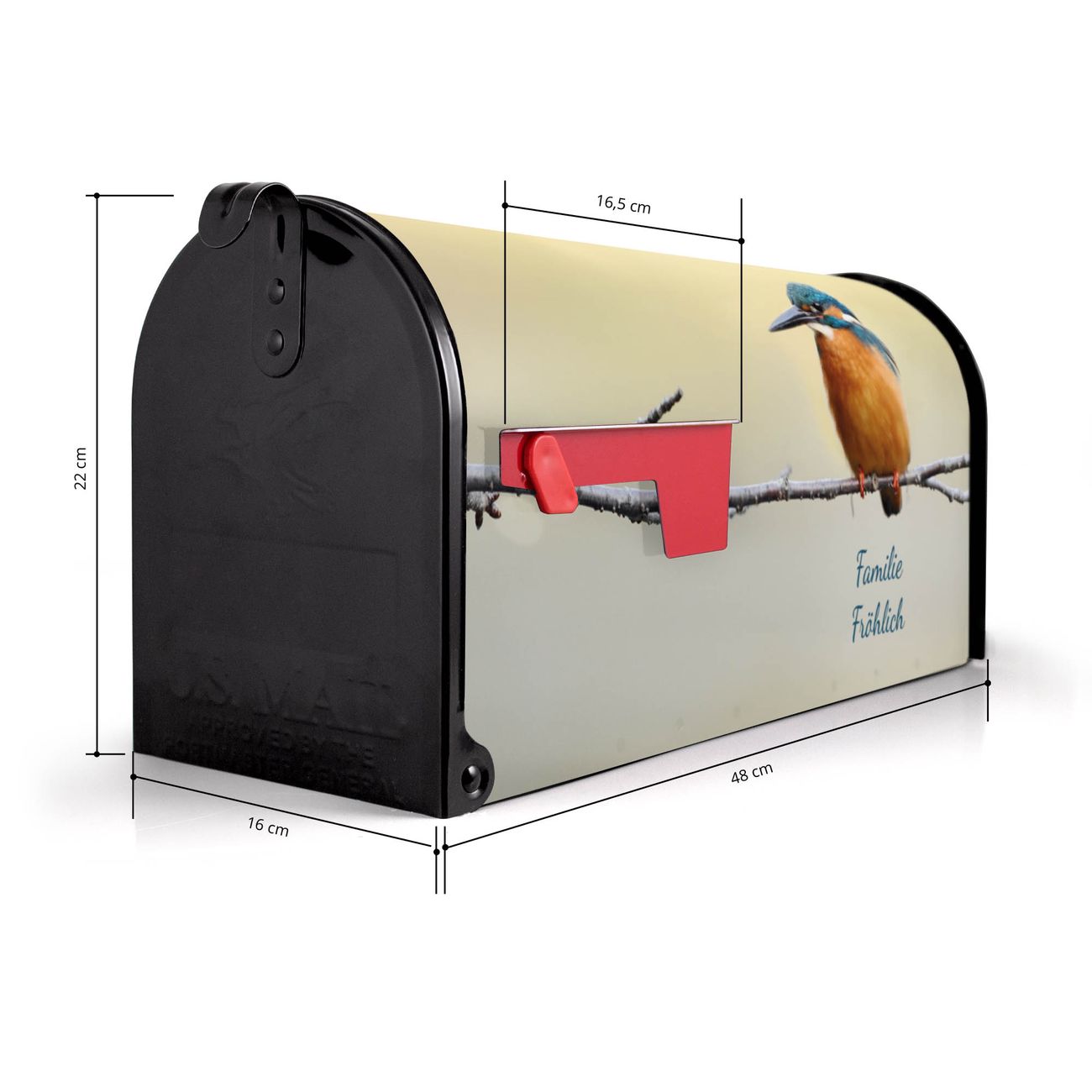 Der amerikanische Briefkasten von banjado mit Pause Motiv bietet Ihnen ausreichend Fassungsvermögen, um große A4 Sendungen und Zeitschriften zu empfangen. Die typisch amerikanische rote Fahne zeigt Ihnen an, wenn Sie Post erhalten haben. Die US-Mailbox besteht aus verzinktem Stahlblech welches lackiert wurde und ist 48 x 22 x 16 CM (BxHxT) groß. Die Folie mit Motiv Pause besteht aus einer wetter- und UV-resistenten Folie, die mit einem Schutzlaminat überzogen ist, sodass die US Mailbox zusätzlich vor Kratzern geschützt ist. An der Unterkante sind 4 Löcher je Seite um die Mailbox, typisch amerikanisch, an einem Holzpfahl oder einem Zaun zu befestigen. Auf Wunsch können Sie bei uns den passenden Standfuß oder die passende Wandhalterung kaufen um die US-Mailbox sicher zu befestigen. Wir bieten Ihnen ebenfalls Namensschilder, bereits beschriftet oder frei zu beschriften, und verschiedene selbst gestaltete Bitte-Keine-Werbung-Aufkleber.