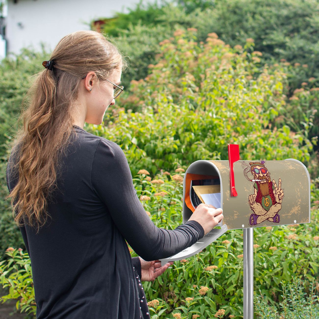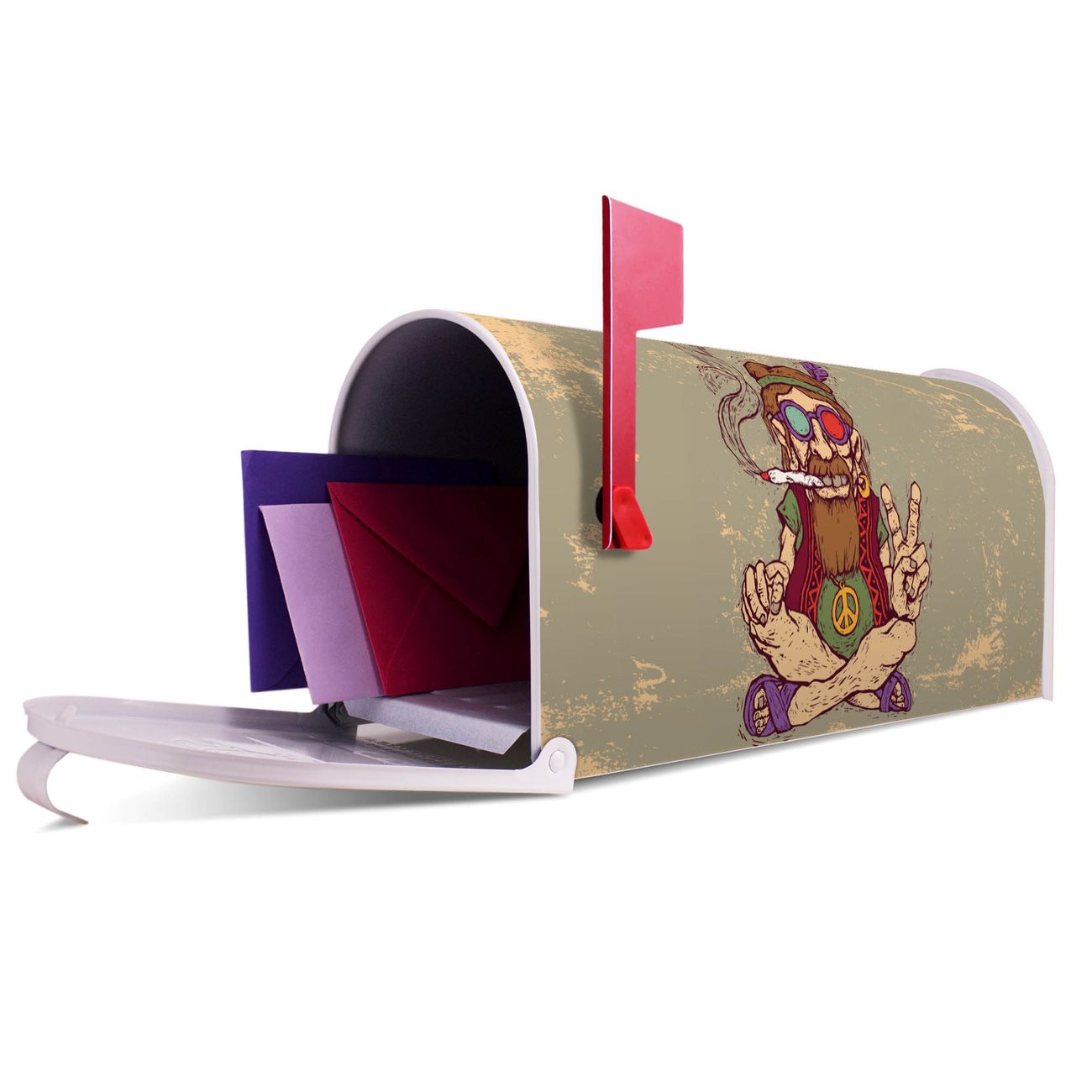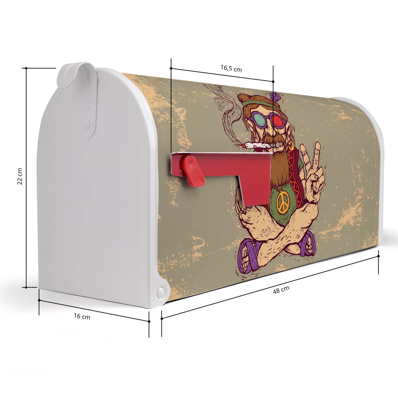 Der amerikanische Briefkasten von banjado mit Peace Motiv bietet Ihnen ausreichend Fassungsvermögen, um große A4 Sendungen und Zeitschriften zu empfangen. Die typisch amerikanische rote Fahne zeigt Ihnen an, wenn Sie Post erhalten haben. Die US-Mailbox besteht aus verzinktem Stahlblech welches lackiert wurde und ist 48 x 22 x 16 CM (BxHxT) groß. Die Folie mit Motiv Peace besteht aus einer wetter- und UV-resistenten Folie, die mit einem Schutzlaminat überzogen ist, sodass die US Mailbox zusätzlich vor Kratzern geschützt ist. An der Unterkante sind 4 Löcher je Seite um die Mailbox, typisch amerikanisch, an einem Holzpfahl oder einem Zaun zu befestigen. Auf Wunsch können Sie bei uns den passenden Standfuß oder die passende Wandhalterung kaufen um die US-Mailbox sicher zu befestigen. Wir bieten Ihnen ebenfalls Namensschilder, bereits beschriftet oder frei zu beschriften, und verschiedene selbst gestaltete Bitte-Keine-Werbung-Aufkleber.