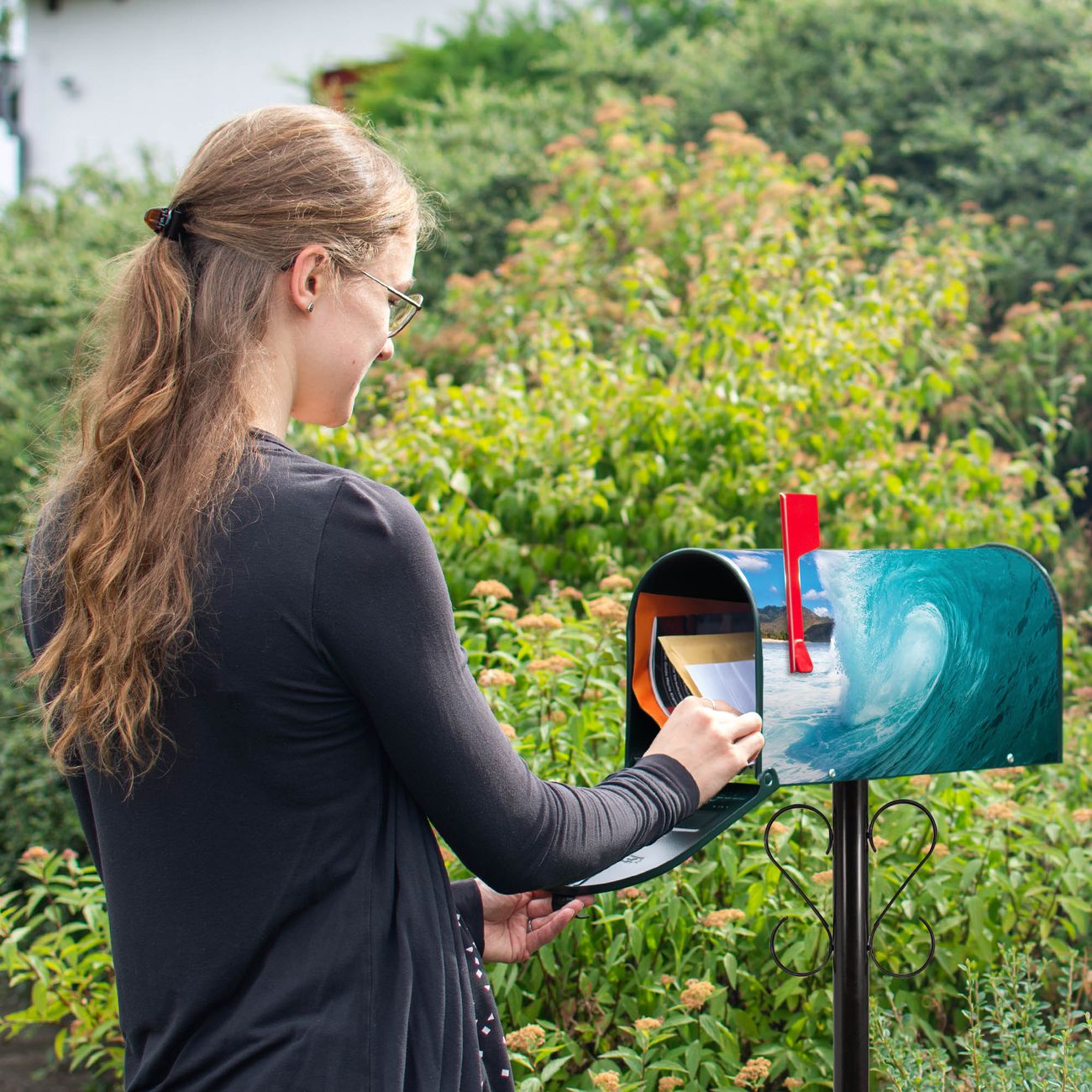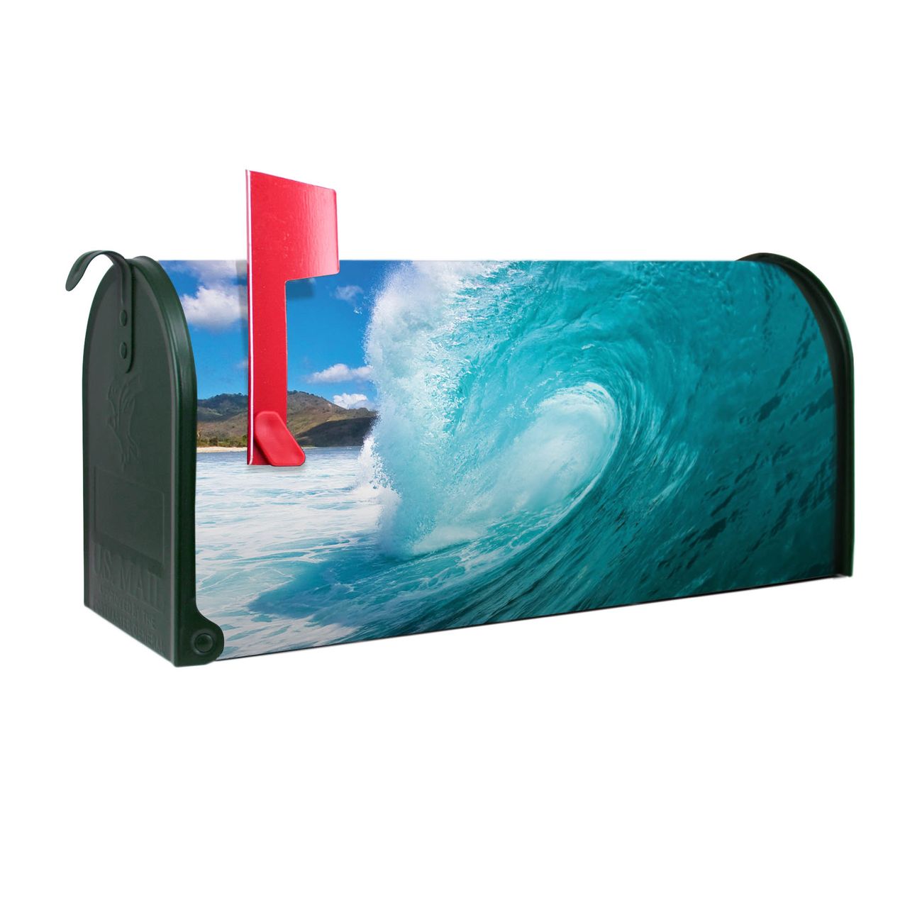 Unser amerikanischer Briefkasten mit dem Motiv Perfekte Welle hat ein sehr ansprechendes und ausgefallenes Design, ist in der Grundfarbe weiß, grün oder schwarz erhältlich. Damit entlocken Sie Ihren Nachbarn und dem Postboten immer wieder ein Lächeln. Die Mailbox ist ein Original Import aus Mississippi USA und wird von unserer kleinen Manufaktur in Sachsen von Hand veredelt. Die US-Mailbox bietet ausreichend Platz auch für große Sendungen, eine Fahne die Ihnen Post anzeigt, wetterfestes und äußerst stabiles Material - so macht Post empfangen Freude.