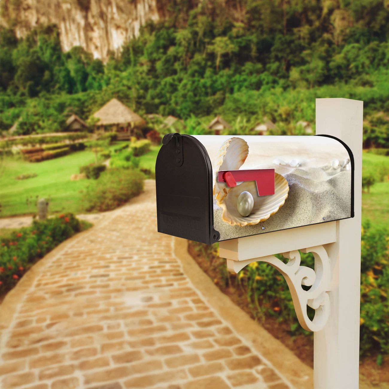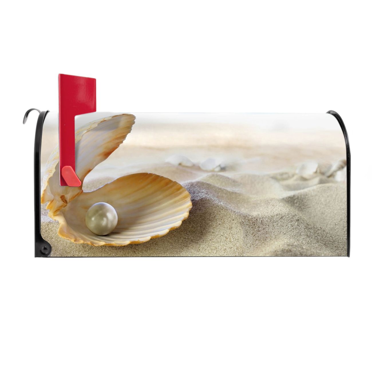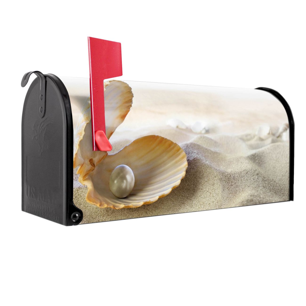 Der amerikanische Briefkasten von banjado mit Perlenmuschel Motiv bietet Ihnen ausreichend Fassungsvermögen, um große A4 Sendungen und Zeitschriften zu empfangen. Die typisch amerikanische rote Fahne zeigt Ihnen an, wenn Sie Post erhalten haben. Die US-Mailbox besteht aus verzinktem Stahlblech welches lackiert wurde und ist 48 x 22 x 16 CM (BxHxT) groß. Die Folie mit Motiv Perlenmuschel besteht aus einer wetter- und UV-resistenten Folie, die mit einem Schutzlaminat überzogen ist, sodass die US Mailbox zusätzlich vor Kratzern geschützt ist. An der Unterkante sind 4 Löcher je Seite um die Mailbox, typisch amerikanisch, an einem Holzpfahl oder einem Zaun zu befestigen. Auf Wunsch können Sie bei uns den passenden Standfuß oder die passende Wandhalterung kaufen um die US-Mailbox sicher zu befestigen. Wir bieten Ihnen ebenfalls Namensschilder, bereits beschriftet oder frei zu beschriften, und verschiedene selbst gestaltete Bitte-Keine-Werbung-Aufkleber.