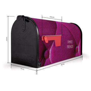 Der amerikanische Briefkasten von banjado mit Pink Polster Motiv bietet Ihnen ausreichend Fassungsvermögen, um große A4 Sendungen und Zeitschriften zu empfangen. Die typisch amerikanische rote Fahne zeigt Ihnen an, wenn Sie Post erhalten haben. Die US-Mailbox besteht aus verzinktem Stahlblech welches lackiert wurde und ist 48 x 22 x 16 CM (BxHxT) groß. Die Folie mit Motiv Pink Polster besteht aus einer wetter- und UV-resistenten Folie, die mit einem Schutzlaminat überzogen ist, sodass die US Mailbox zusätzlich vor Kratzern geschützt ist. An der Unterkante sind 4 Löcher je Seite um die Mailbox, typisch amerikanisch, an einem Holzpfahl oder einem Zaun zu befestigen. Auf Wunsch können Sie bei uns den passenden Standfuß oder die passende Wandhalterung kaufen um die US-Mailbox sicher zu befestigen. Wir bieten Ihnen ebenfalls Namensschilder, bereits beschriftet oder frei zu beschriften, und verschiedene selbst gestaltete Bitte-Keine-Werbung-Aufkleber.