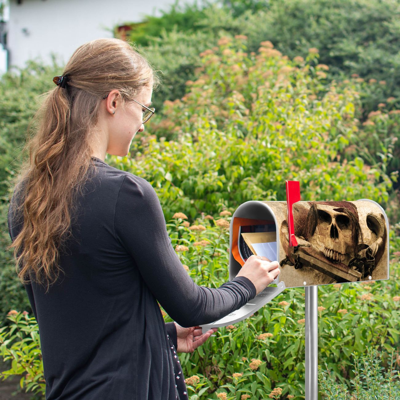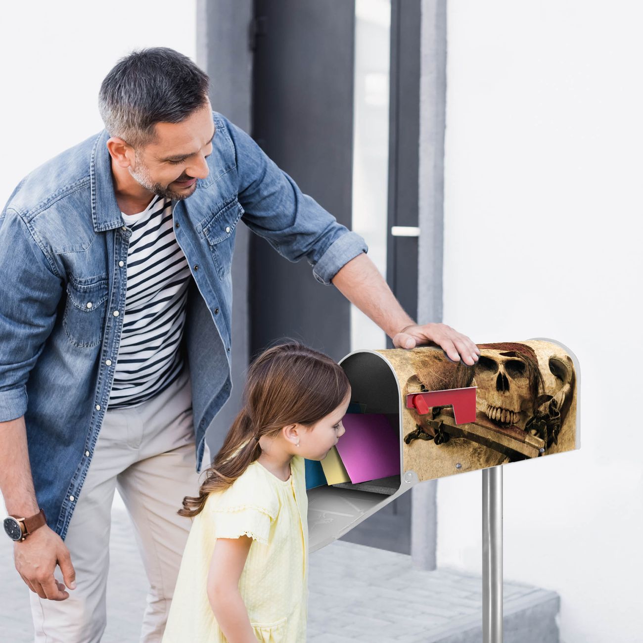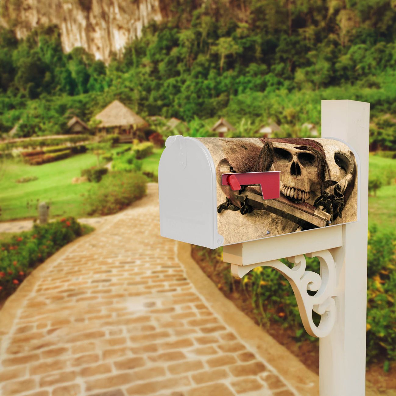 Der amerikanische Briefkasten von banjado mit Pirat Motiv bietet Ihnen ausreichend Fassungsvermögen, um große A4 Sendungen und Zeitschriften zu empfangen. Die typisch amerikanische rote Fahne zeigt Ihnen an, wenn Sie Post erhalten haben. Die US-Mailbox besteht aus verzinktem Stahlblech welches lackiert wurde und ist 48 x 22 x 16 CM (BxHxT) groß. Die Folie mit Motiv Pirat besteht aus einer wetter- und UV-resistenten Folie, die mit einem Schutzlaminat überzogen ist, sodass die US Mailbox zusätzlich vor Kratzern geschützt ist. An der Unterkante sind 4 Löcher je Seite um die Mailbox, typisch amerikanisch, an einem Holzpfahl oder einem Zaun zu befestigen. Auf Wunsch können Sie bei uns den passenden Standfuß oder die passende Wandhalterung kaufen um die US-Mailbox sicher zu befestigen. Wir bieten Ihnen ebenfalls Namensschilder, bereits beschriftet oder frei zu beschriften, und verschiedene selbst gestaltete Bitte-Keine-Werbung-Aufkleber.