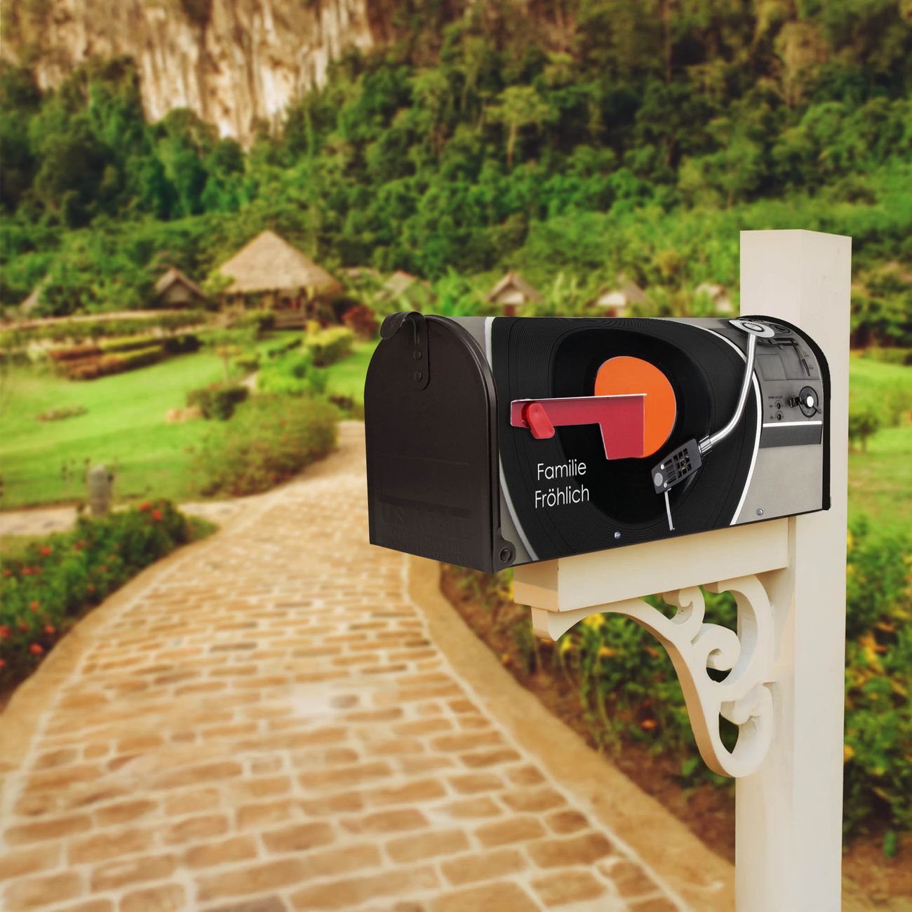 Unser amerikanischer Briefkasten mit dem Motiv Plattenspieler hat ein sehr ansprechendes und ausgefallenes Design, ist in der Grundfarbe weiß, grün oder schwarz erhältlich. Damit entlocken Sie Ihren Nachbarn und dem Postboten immer wieder ein Lächeln. Die Mailbox ist ein Original Import aus Mississippi USA und wird von unserer kleinen Manufaktur in Sachsen von Hand veredelt. Die US-Mailbox bietet ausreichend Platz auch für große Sendungen, eine Fahne die Ihnen Post anzeigt, wetterfestes und äußerst stabiles Material - so macht Post empfangen Freude.