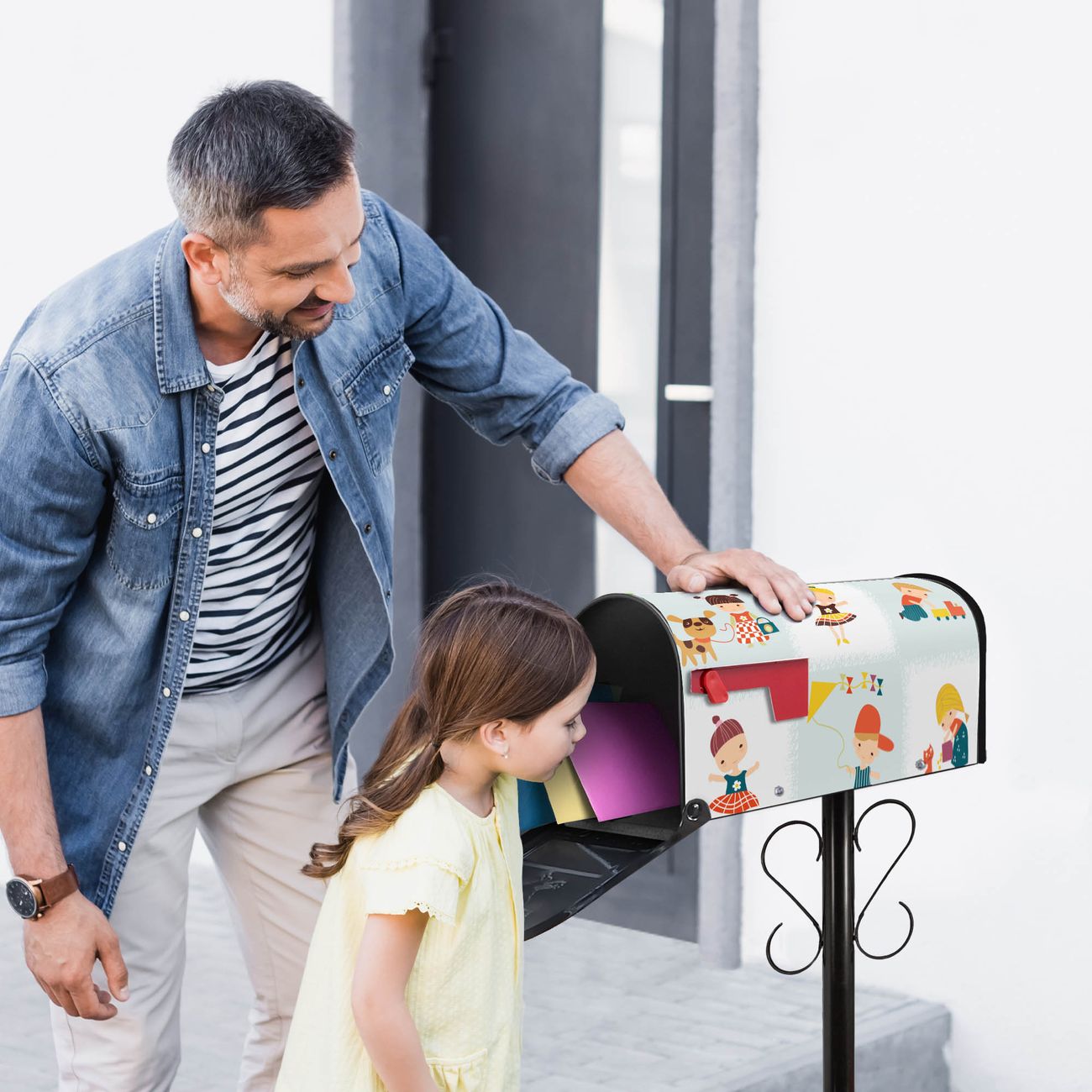 Der amerikanische Briefkasten von banjado mit Play Time Motiv bietet Ihnen ausreichend Fassungsvermögen, um große A4 Sendungen und Zeitschriften zu empfangen. Die typisch amerikanische rote Fahne zeigt Ihnen an, wenn Sie Post erhalten haben. Die US-Mailbox besteht aus verzinktem Stahlblech welches lackiert wurde und ist 48 x 22 x 16 CM (BxHxT) groß. Die Folie mit Motiv Play Time besteht aus einer wetter- und UV-resistenten Folie, die mit einem Schutzlaminat überzogen ist, sodass die US Mailbox zusätzlich vor Kratzern geschützt ist. An der Unterkante sind 4 Löcher je Seite um die Mailbox, typisch amerikanisch, an einem Holzpfahl oder einem Zaun zu befestigen. Auf Wunsch können Sie bei uns den passenden Standfuß oder die passende Wandhalterung kaufen um die US-Mailbox sicher zu befestigen. Wir bieten Ihnen ebenfalls Namensschilder, bereits beschriftet oder frei zu beschriften, und verschiedene selbst gestaltete Bitte-Keine-Werbung-Aufkleber.