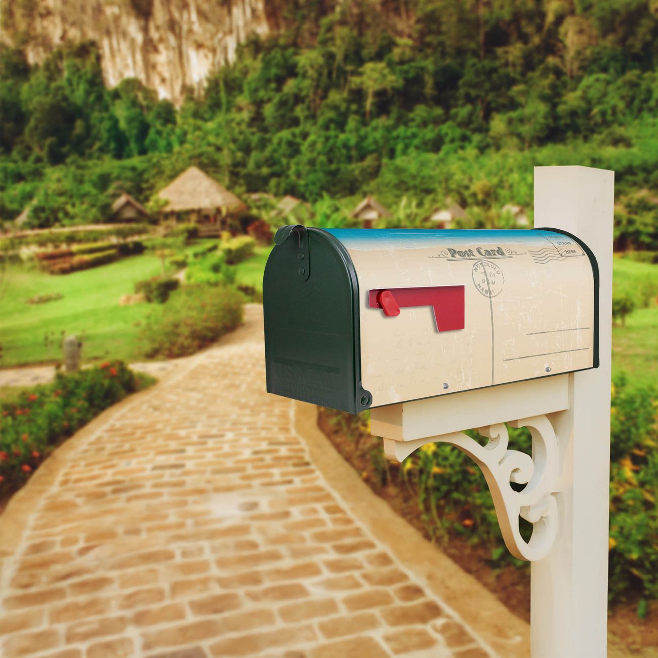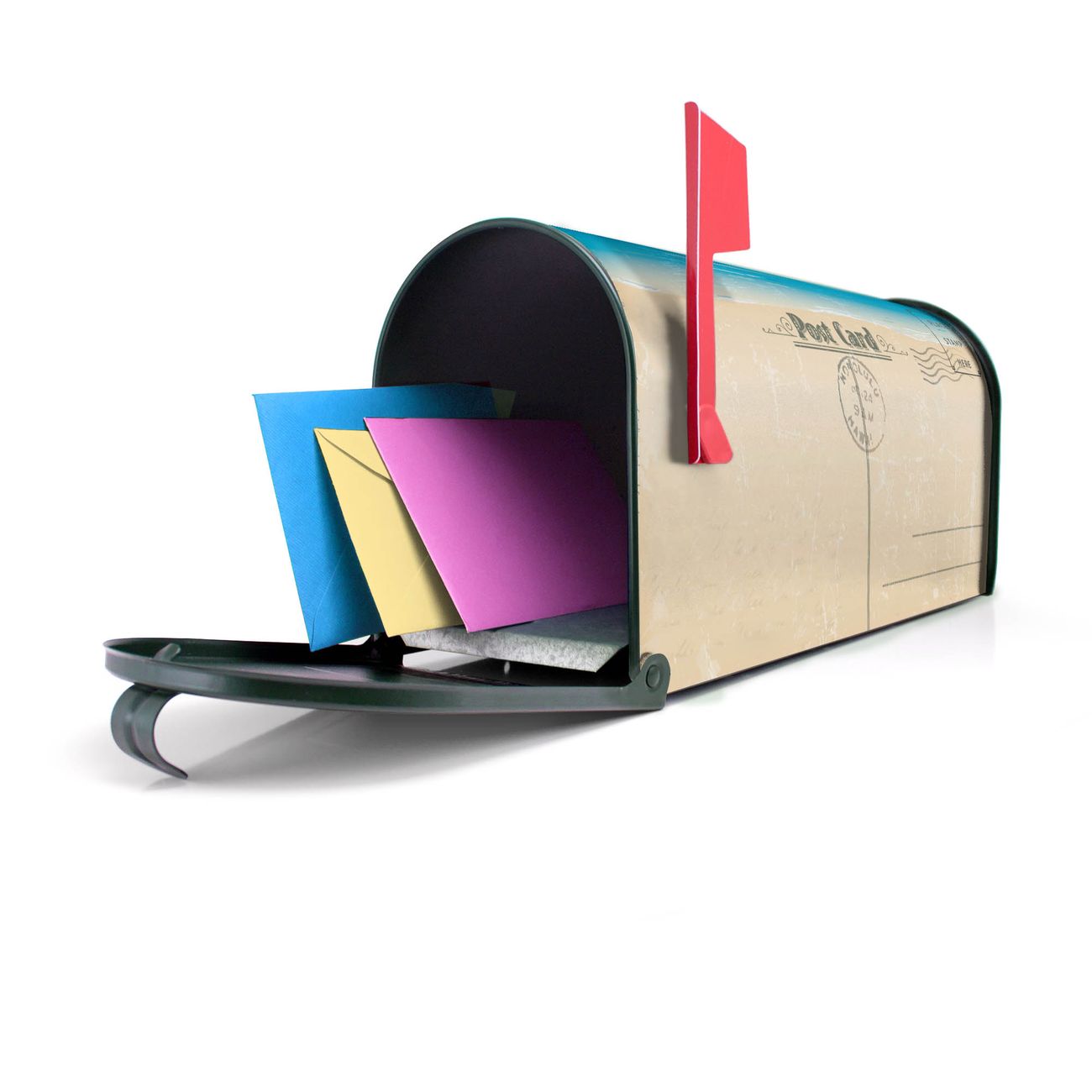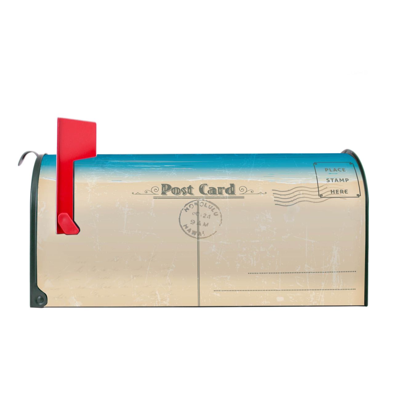 Unser amerikanischer Briefkasten mit dem Motiv Postkarte hat ein sehr ansprechendes und ausgefallenes Design, ist in der Grundfarbe weiß, grün oder schwarz erhältlich. Damit entlocken Sie Ihren Nachbarn und dem Postboten immer wieder ein Lächeln. Die Mailbox ist ein Original Import aus Mississippi USA und wird von unserer kleinen Manufaktur in Sachsen von Hand veredelt. Die US-Mailbox bietet ausreichend Platz auch für große Sendungen, eine Fahne die Ihnen Post anzeigt, wetterfestes und äußerst stabiles Material - so macht Post empfangen Freude.