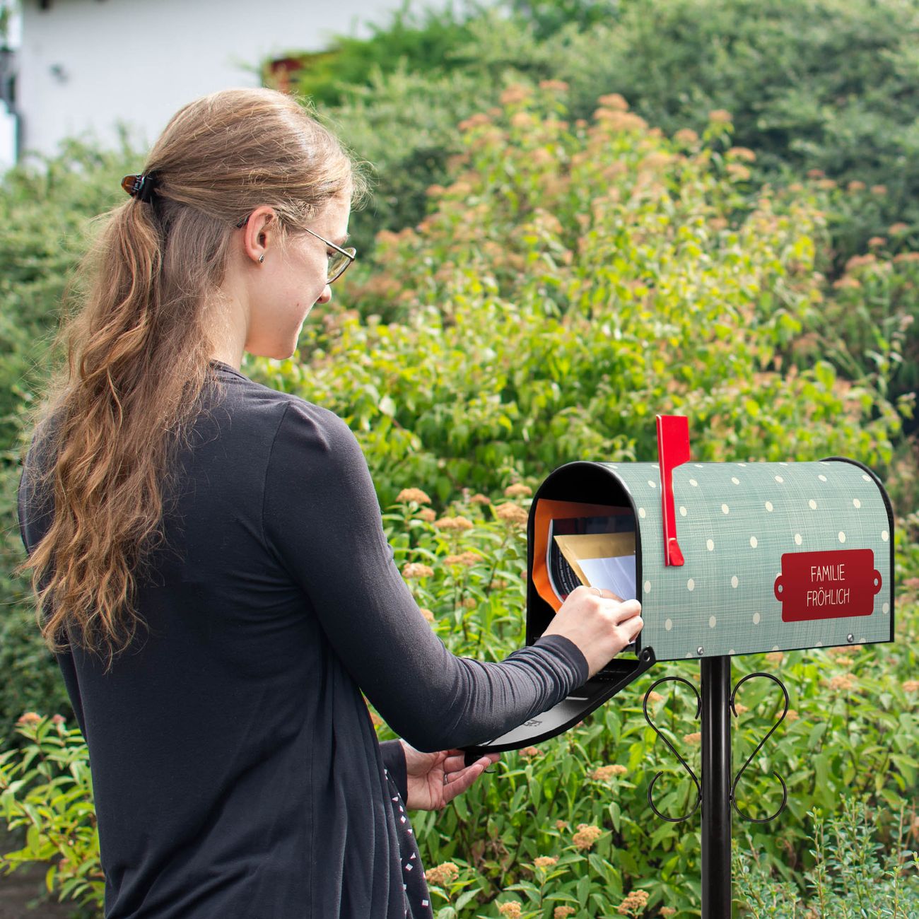Unser amerikanischer Briefkasten mit dem Motiv Punkte Lindgrün hat ein sehr ansprechendes und ausgefallenes Design, ist in der Grundfarbe weiß, grün oder schwarz erhältlich. Damit entlocken Sie Ihren Nachbarn und dem Postboten immer wieder ein Lächeln. Die Mailbox ist ein Original Import aus Mississippi USA und wird von unserer kleinen Manufaktur in Sachsen von Hand veredelt. Die US-Mailbox bietet ausreichend Platz auch für große Sendungen, eine Fahne die Ihnen Post anzeigt, wetterfestes und äußerst stabiles Material - so macht Post empfangen Freude.