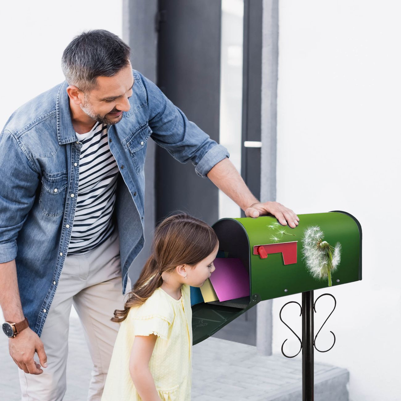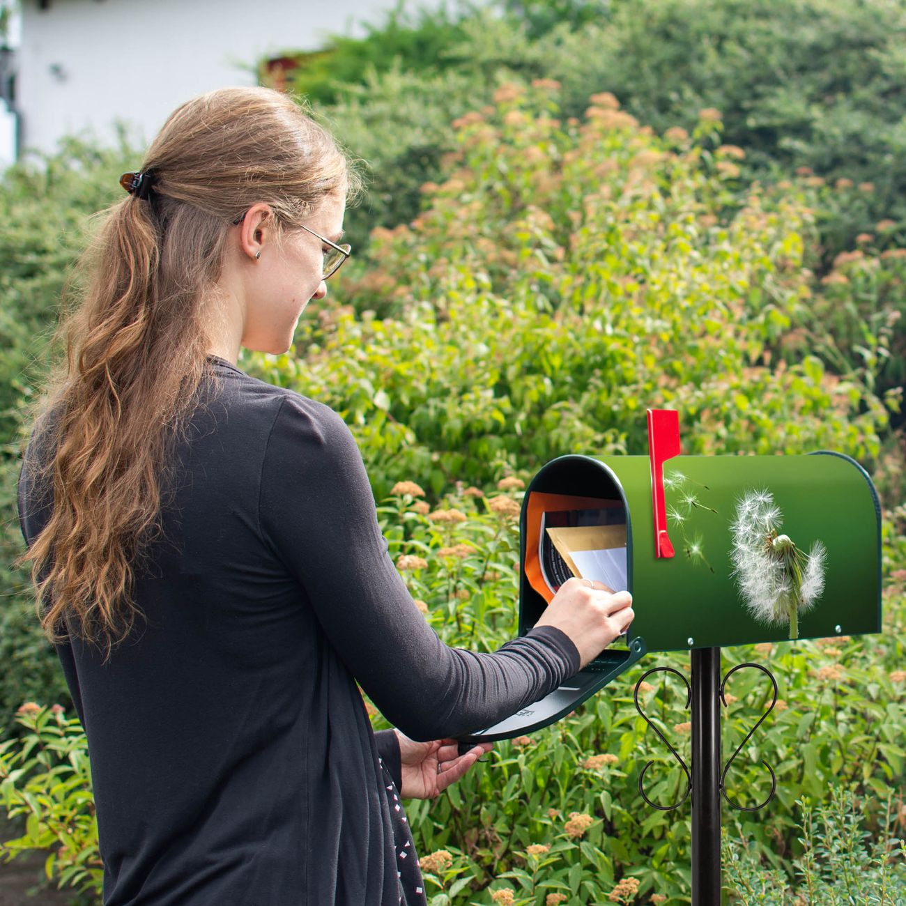 Unser amerikanischer Briefkasten mit dem Motiv Pusteblume hat ein sehr ansprechendes und ausgefallenes Design, ist in der Grundfarbe weiß, grün oder schwarz erhältlich. Damit entlocken Sie Ihren Nachbarn und dem Postboten immer wieder ein Lächeln. Die Mailbox ist ein Original Import aus Mississippi USA und wird von unserer kleinen Manufaktur in Sachsen von Hand veredelt. Die US-Mailbox bietet ausreichend Platz auch für große Sendungen, eine Fahne die Ihnen Post anzeigt, wetterfestes und äußerst stabiles Material - so macht Post empfangen Freude.