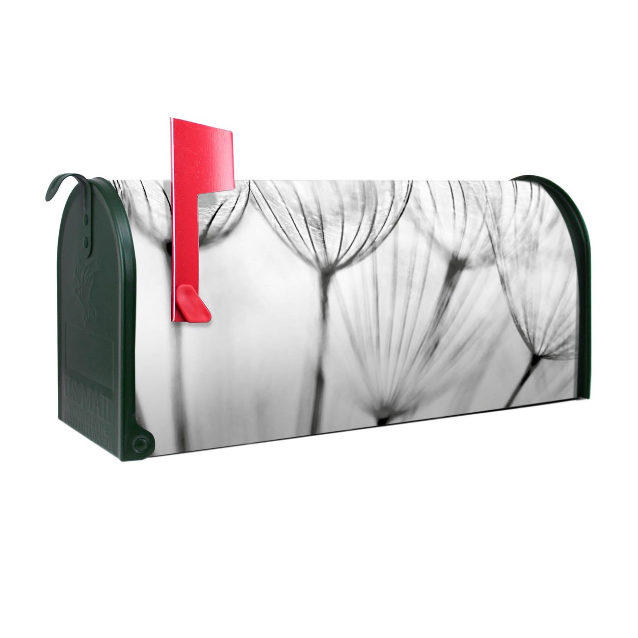 Unser amerikanischer Briefkasten mit dem Motiv Pusteblumen SW hat ein sehr ansprechendes und ausgefallenes Design, ist in der Grundfarbe weiß, grün oder schwarz erhältlich. Damit entlocken Sie Ihren Nachbarn und dem Postboten immer wieder ein Lächeln. Die Mailbox ist ein Original Import aus Mississippi USA und wird von unserer kleinen Manufaktur in Sachsen von Hand veredelt. Die US-Mailbox bietet ausreichend Platz auch für große Sendungen, eine Fahne die Ihnen Post anzeigt, wetterfestes und äußerst stabiles Material - so macht Post empfangen Freude.