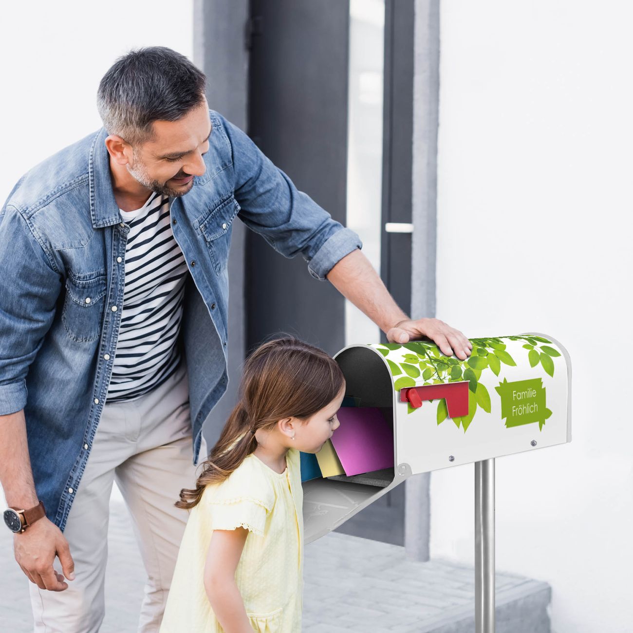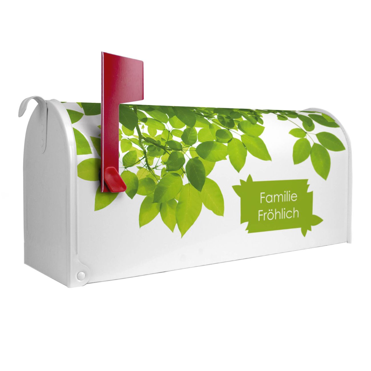 Unser amerikanischer Briefkasten mit dem Motiv WT Rahmen Blätter hat ein sehr ansprechendes und ausgefallenes Design, ist in der Grundfarbe weiß, grün oder schwarz erhältlich. Damit entlocken Sie Ihren Nachbarn und dem Postboten immer wieder ein Lächeln. Die Mailbox ist ein Original Import aus Mississippi USA und wird von unserer kleinen Manufaktur in Sachsen von Hand veredelt. Die US-Mailbox bietet ausreichend Platz auch für große Sendungen, eine Fahne die Ihnen Post anzeigt, wetterfestes und äußerst stabiles Material - so macht Post empfangen Freude.