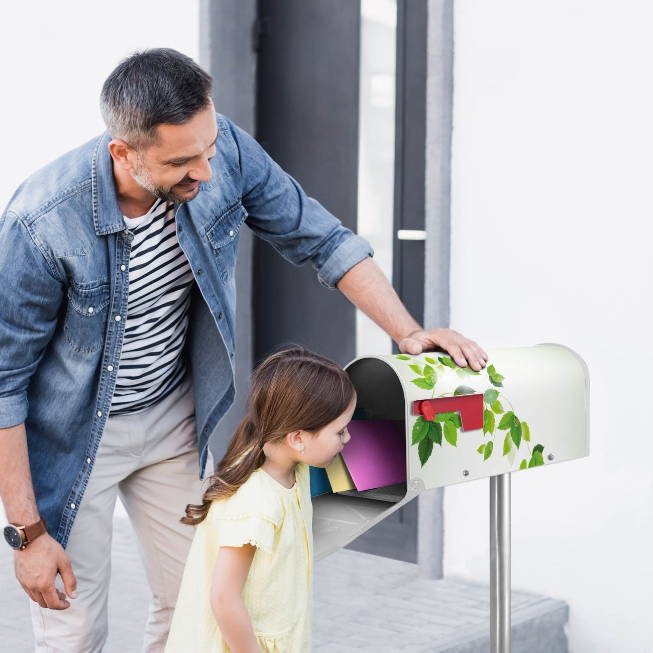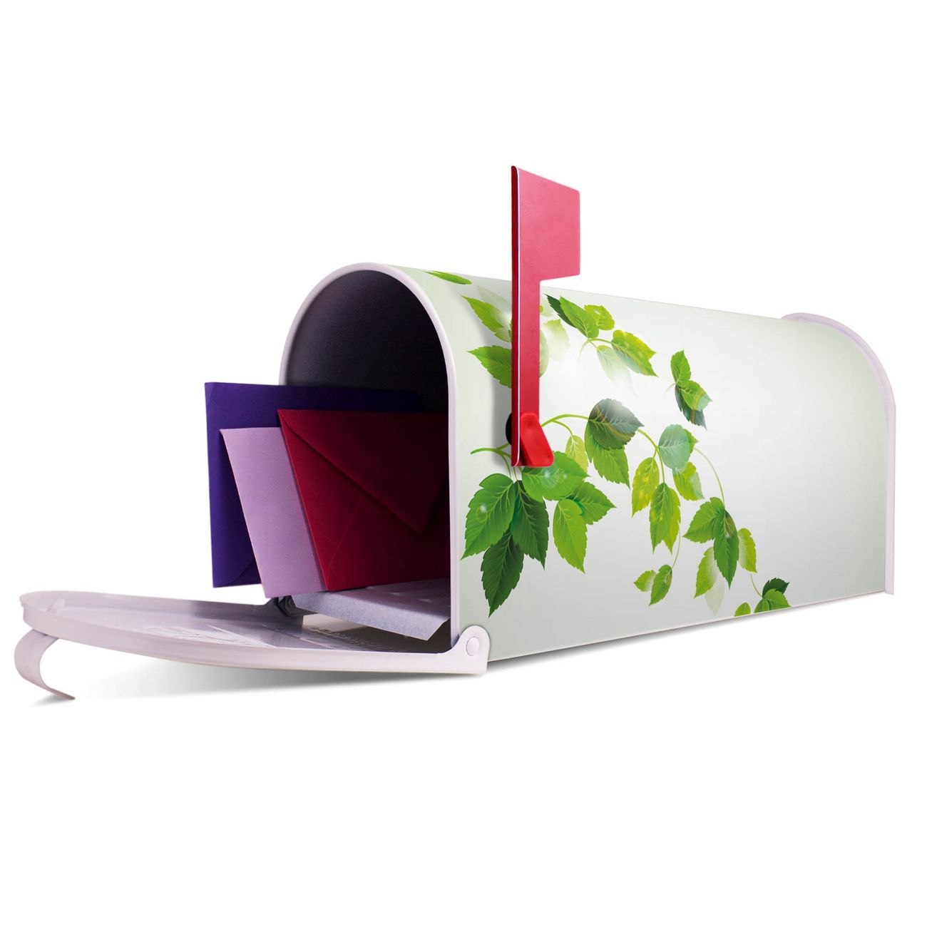 Unser amerikanischer Briefkasten mit dem Motiv Ranke Gelb Weiß hat ein sehr ansprechendes und ausgefallenes Design, ist in der Grundfarbe weiß, grün oder schwarz erhältlich. Damit entlocken Sie Ihren Nachbarn und dem Postboten immer wieder ein Lächeln. Die Mailbox ist ein Original Import aus Mississippi USA und wird von unserer kleinen Manufaktur in Sachsen von Hand veredelt. Die US-Mailbox bietet ausreichend Platz auch für große Sendungen, eine Fahne die Ihnen Post anzeigt, wetterfestes und äußerst stabiles Material - so macht Post empfangen Freude.