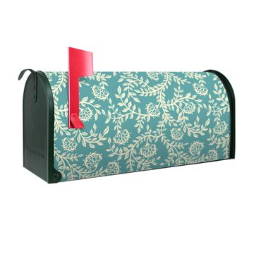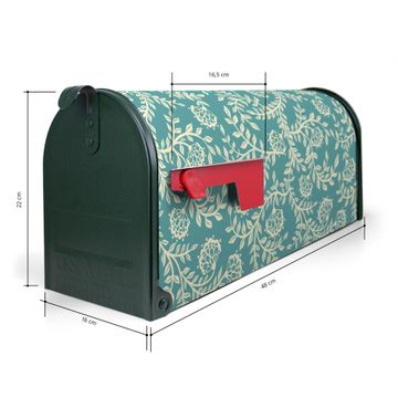Der amerikanische Briefkasten von banjado mit Rankenornament Motiv bietet Ihnen ausreichend Fassungsvermögen, um große A4 Sendungen und Zeitschriften zu empfangen. Die typisch amerikanische rote Fahne zeigt Ihnen an, wenn Sie Post erhalten haben. Die US-Mailbox besteht aus verzinktem Stahlblech welches lackiert wurde und ist 48 x 22 x 16 CM (BxHxT) groß. Die Folie mit Motiv Rankenornament besteht aus einer wetter- und UV-resistenten Folie, die mit einem Schutzlaminat überzogen ist, sodass die US Mailbox zusätzlich vor Kratzern geschützt ist. An der Unterkante sind 4 Löcher je Seite um die Mailbox, typisch amerikanisch, an einem Holzpfahl oder einem Zaun zu befestigen. Auf Wunsch können Sie bei uns den passenden Standfuß oder die passende Wandhalterung kaufen um die US-Mailbox sicher zu befestigen. Wir bieten Ihnen ebenfalls Namensschilder, bereits beschriftet oder frei zu beschriften, und verschiedene selbst gestaltete Bitte-Keine-Werbung-Aufkleber.