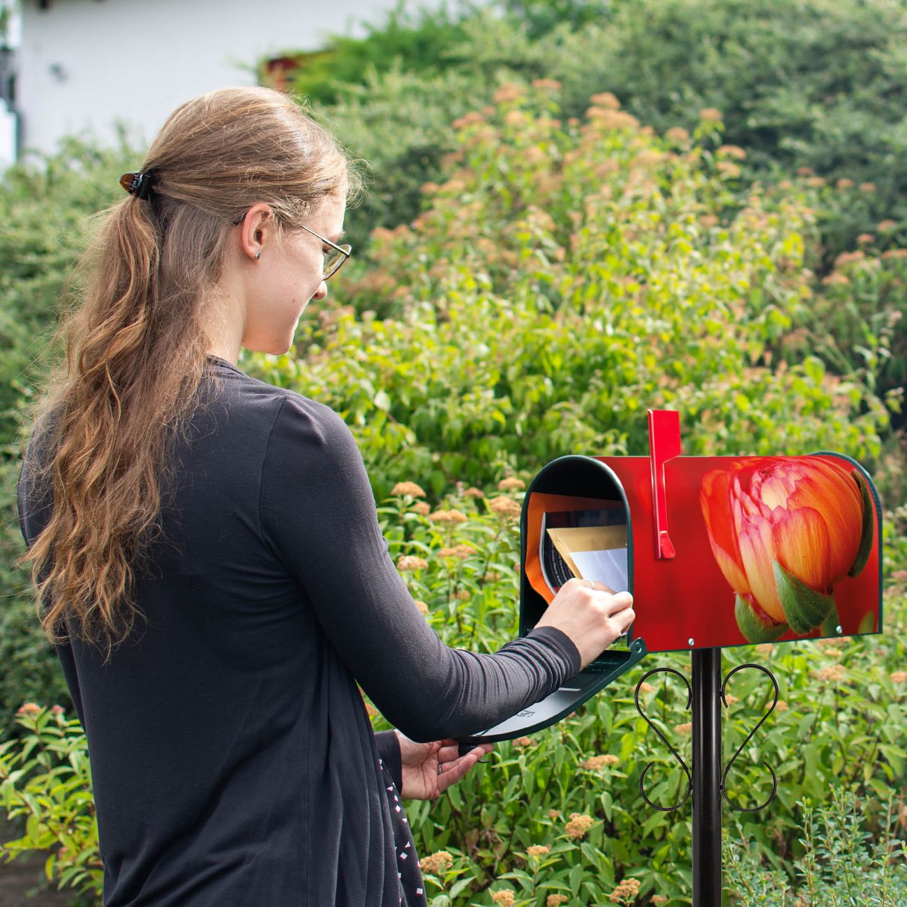 Unser amerikanischer Briefkasten mit dem Motiv Ranunkel hat ein sehr ansprechendes und ausgefallenes Design, ist in der Grundfarbe weiß, grün oder schwarz erhältlich. Damit entlocken Sie Ihren Nachbarn und dem Postboten immer wieder ein Lächeln. Die Mailbox ist ein Original Import aus Mississippi USA und wird von unserer kleinen Manufaktur in Sachsen von Hand veredelt. Die US-Mailbox bietet ausreichend Platz auch für große Sendungen, eine Fahne die Ihnen Post anzeigt, wetterfestes und äußerst stabiles Material - so macht Post empfangen Freude.