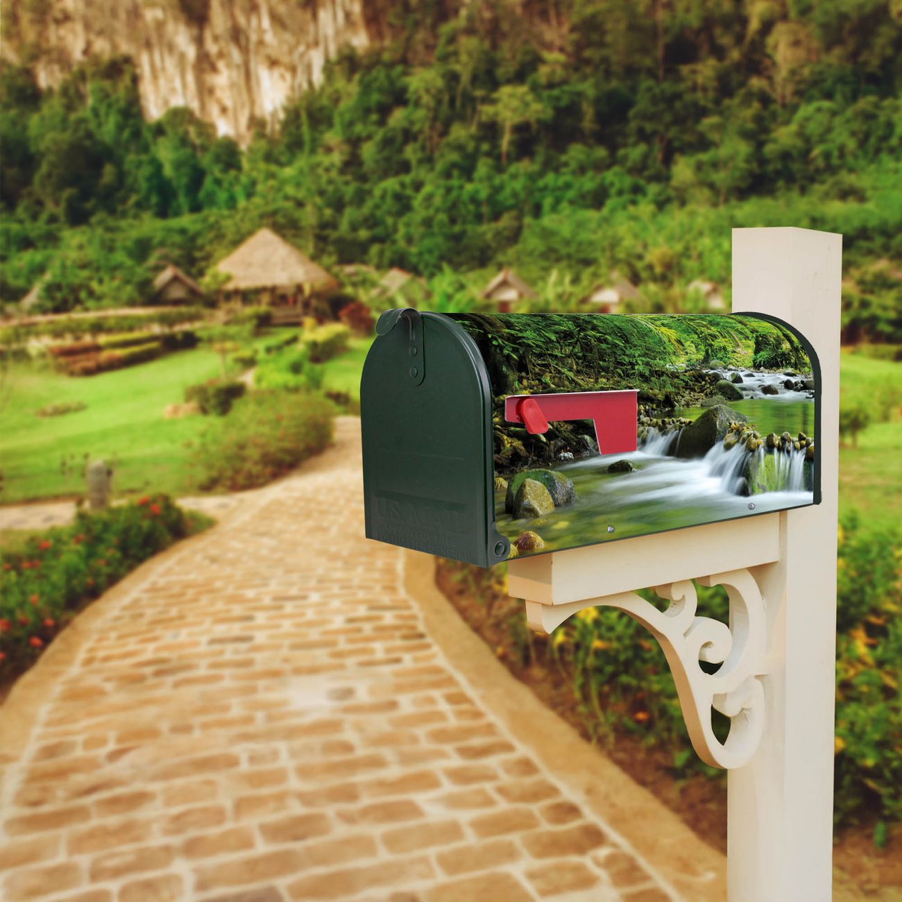 Unser amerikanischer Briefkasten mit dem Motiv Rauschender Bach hat ein sehr ansprechendes und ausgefallenes Design, ist in der Grundfarbe weiß, grün oder schwarz erhältlich. Damit entlocken Sie Ihren Nachbarn und dem Postboten immer wieder ein Lächeln. Die Mailbox ist ein Original Import aus Mississippi USA und wird von unserer kleinen Manufaktur in Sachsen von Hand veredelt. Die US-Mailbox bietet ausreichend Platz auch für große Sendungen, eine Fahne die Ihnen Post anzeigt, wetterfestes und äußerst stabiles Material - so macht Post empfangen Freude.