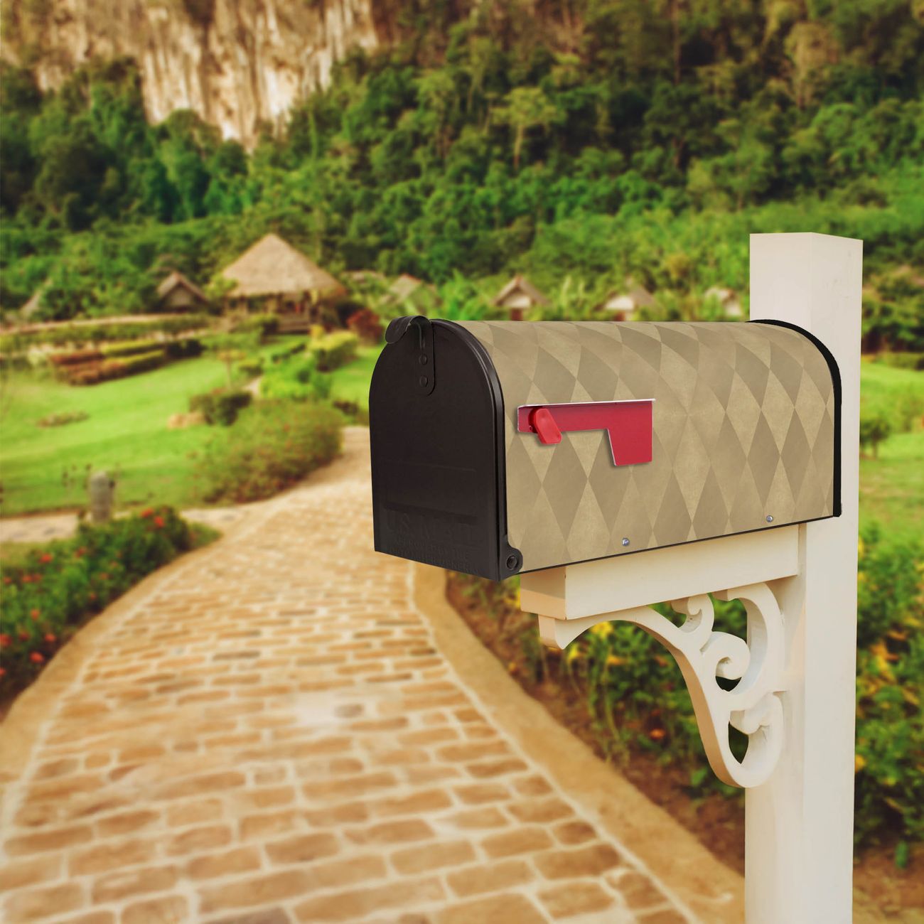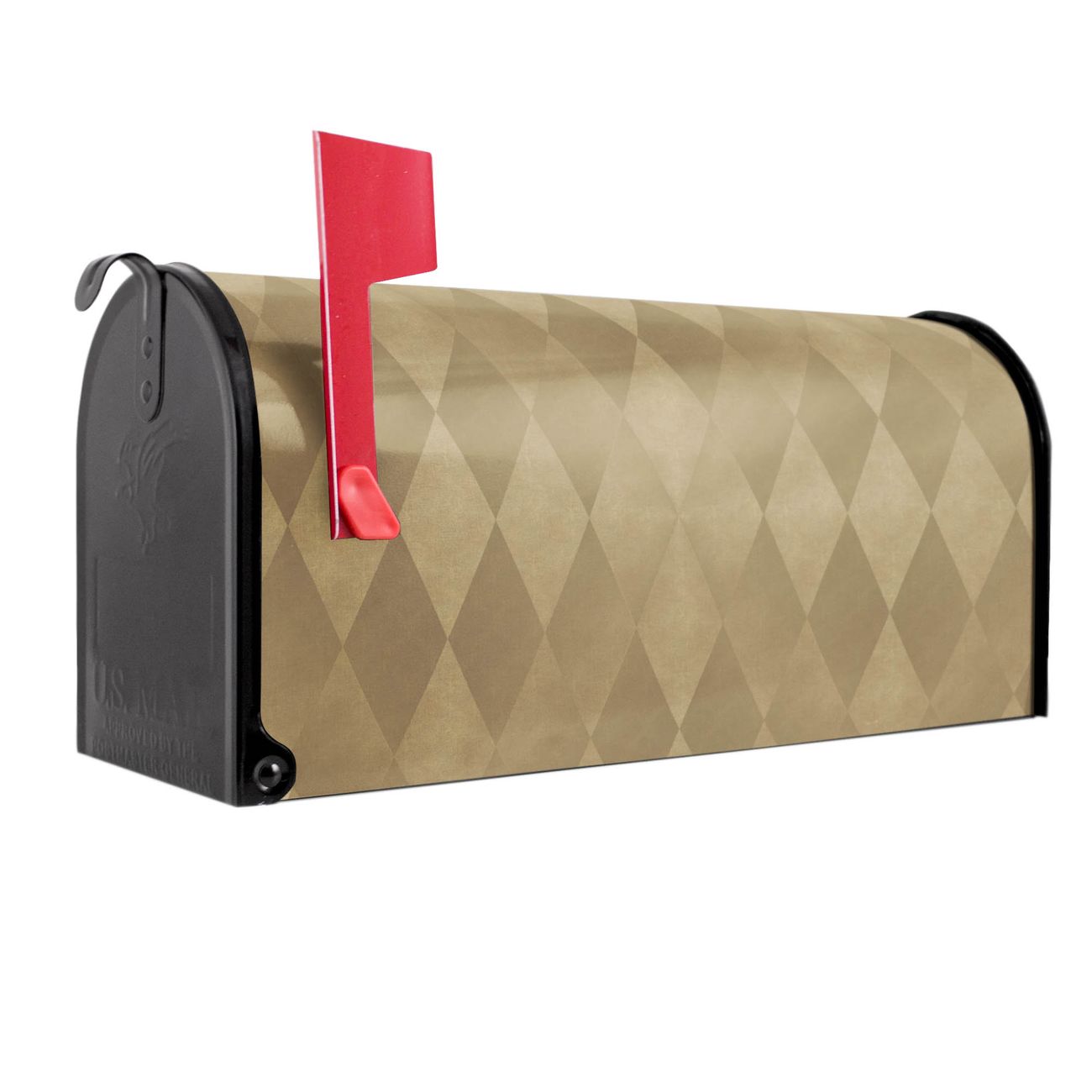 Der amerikanische Briefkasten von banjado mit Rauten Metall Motiv bietet Ihnen ausreichend Fassungsvermögen, um große A4 Sendungen und Zeitschriften zu empfangen. Die typisch amerikanische rote Fahne zeigt Ihnen an, wenn Sie Post erhalten haben. Die US-Mailbox besteht aus verzinktem Stahlblech welches lackiert wurde und ist 48 x 22 x 16 CM (BxHxT) groß. Die Folie mit Motiv Rauten Metall besteht aus einer wetter- und UV-resistenten Folie, die mit einem Schutzlaminat überzogen ist, sodass die US Mailbox zusätzlich vor Kratzern geschützt ist. An der Unterkante sind 4 Löcher je Seite um die Mailbox, typisch amerikanisch, an einem Holzpfahl oder einem Zaun zu befestigen. Auf Wunsch können Sie bei uns den passenden Standfuß oder die passende Wandhalterung kaufen um die US-Mailbox sicher zu befestigen. Wir bieten Ihnen ebenfalls Namensschilder, bereits beschriftet oder frei zu beschriften, und verschiedene selbst gestaltete Bitte-Keine-Werbung-Aufkleber.