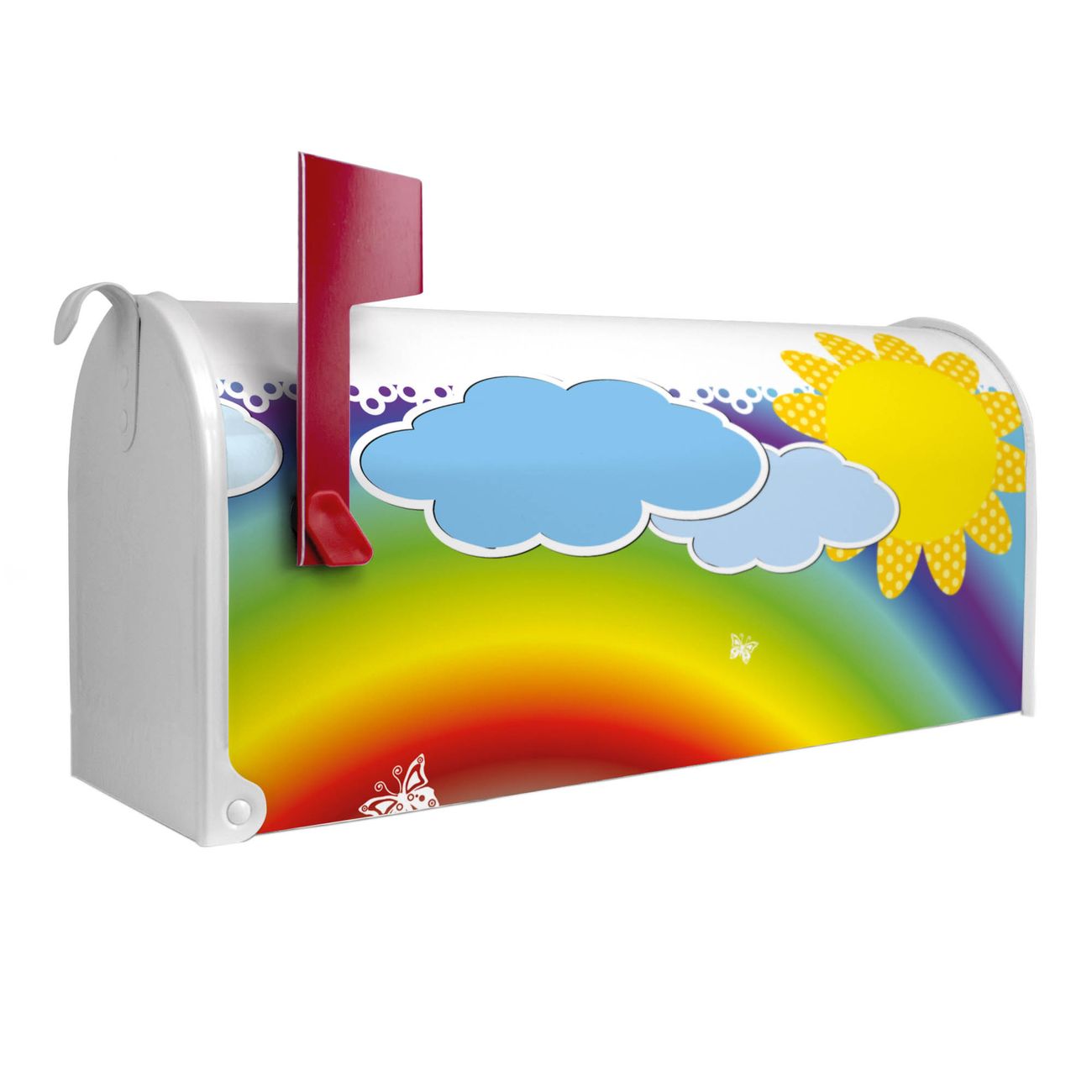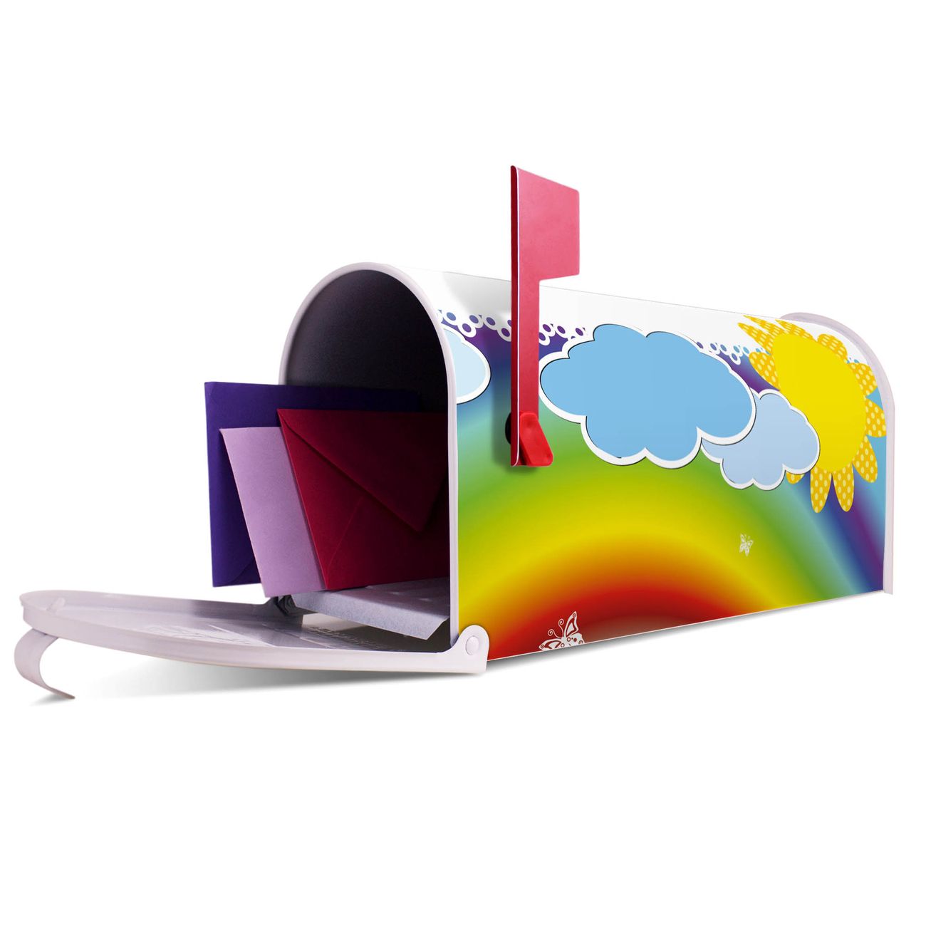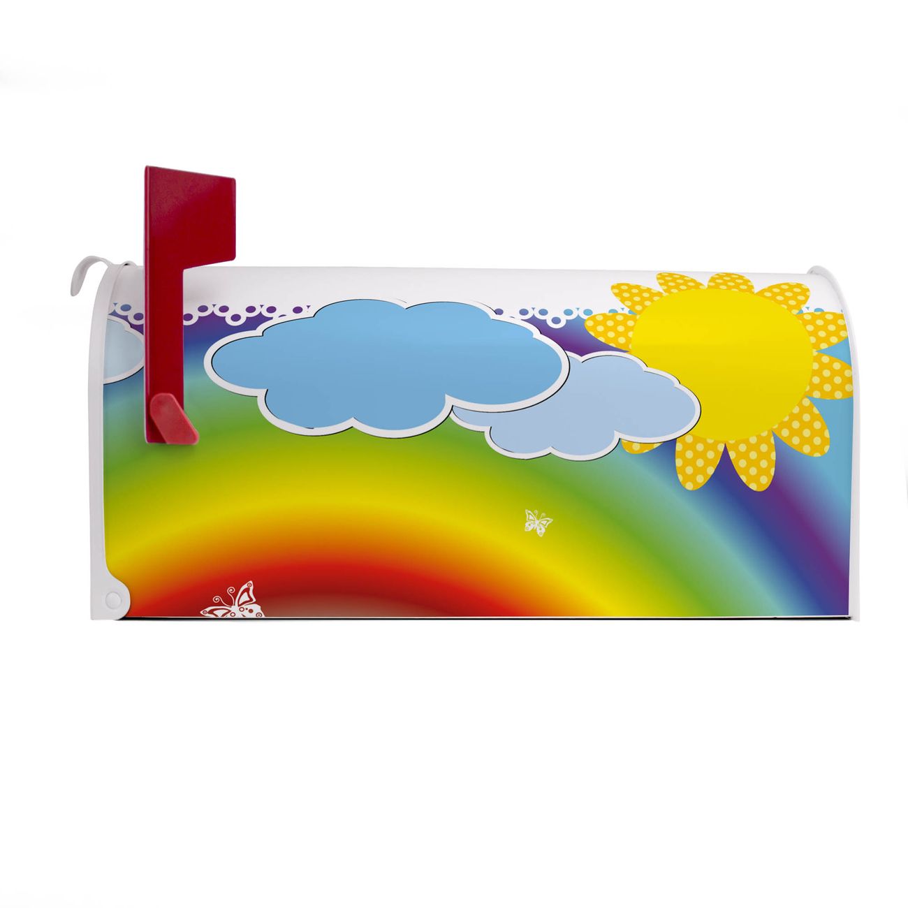 Unser amerikanischer Briefkasten mit dem Motiv Regenbogen hat ein sehr ansprechendes und ausgefallenes Design, ist in der Grundfarbe weiß, grün oder schwarz erhältlich. Damit entlocken Sie Ihren Nachbarn und dem Postboten immer wieder ein Lächeln. Die Mailbox ist ein Original Import aus Mississippi USA und wird von unserer kleinen Manufaktur in Sachsen von Hand veredelt. Die US-Mailbox bietet ausreichend Platz auch für große Sendungen, eine Fahne die Ihnen Post anzeigt, wetterfestes und äußerst stabiles Material - so macht Post empfangen Freude.