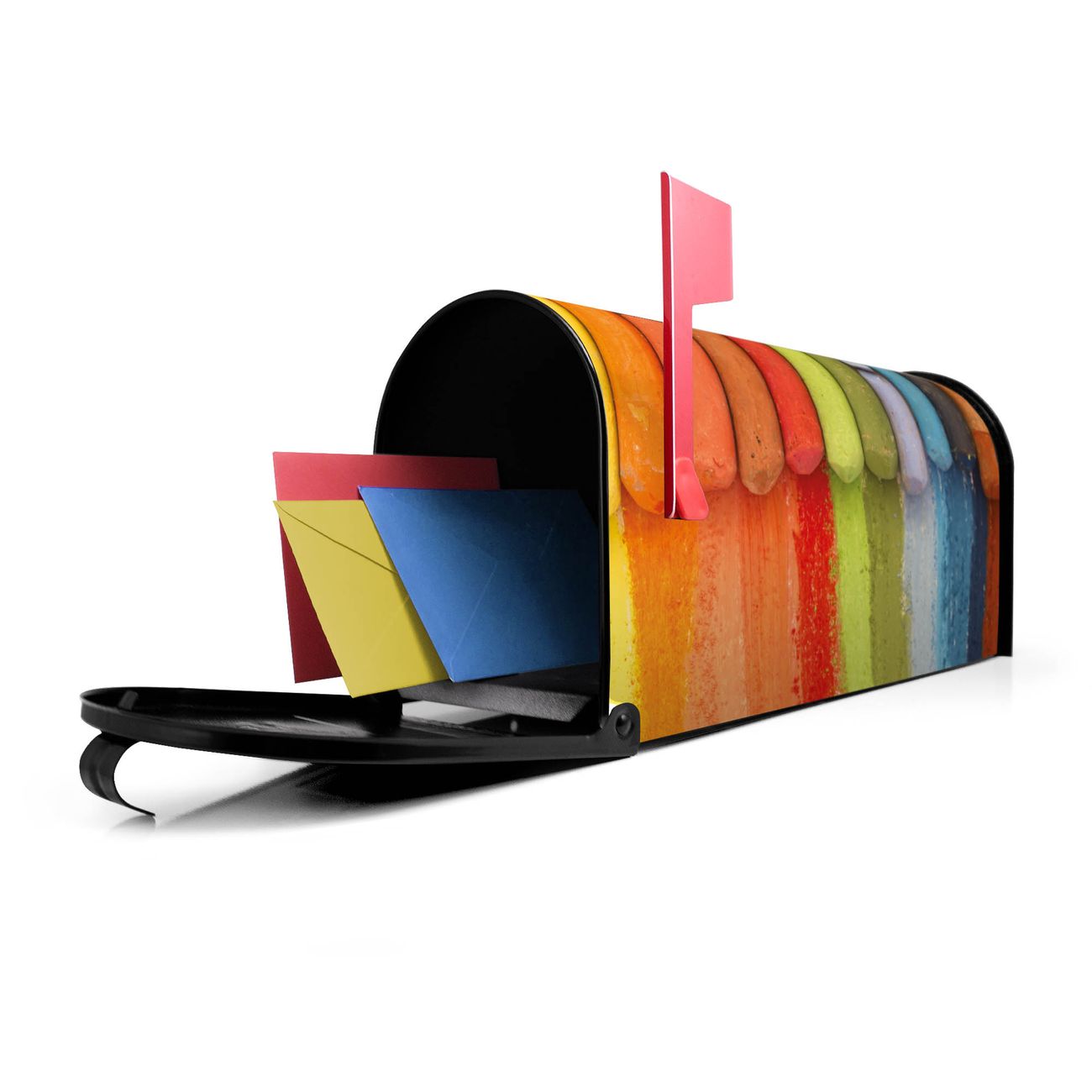 Unser amerikanischer Briefkasten mit dem Motiv Regenbogenkreide hat ein sehr ansprechendes und ausgefallenes Design, ist in der Grundfarbe weiß, grün oder schwarz erhältlich. Damit entlocken Sie Ihren Nachbarn und dem Postboten immer wieder ein Lächeln. Die Mailbox ist ein Original Import aus Mississippi USA und wird von unserer kleinen Manufaktur in Sachsen von Hand veredelt. Die US-Mailbox bietet ausreichend Platz auch für große Sendungen, eine Fahne die Ihnen Post anzeigt, wetterfestes und äußerst stabiles Material - so macht Post empfangen Freude.