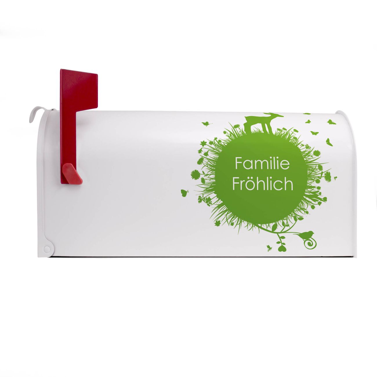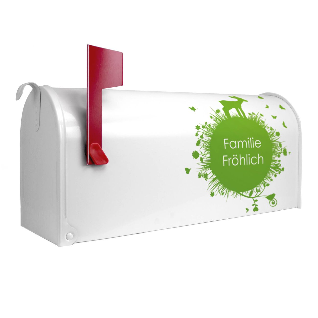Unser amerikanischer Briefkasten mit dem Motiv WT Rehkitz hat ein sehr ansprechendes und ausgefallenes Design, ist in der Grundfarbe weiß, grün oder schwarz erhältlich. Damit entlocken Sie Ihren Nachbarn und dem Postboten immer wieder ein Lächeln. Die Mailbox ist ein Original Import aus Mississippi USA und wird von unserer kleinen Manufaktur in Sachsen von Hand veredelt. Die US-Mailbox bietet ausreichend Platz auch für große Sendungen, eine Fahne die Ihnen Post anzeigt, wetterfestes und äußerst stabiles Material - so macht Post empfangen Freude.