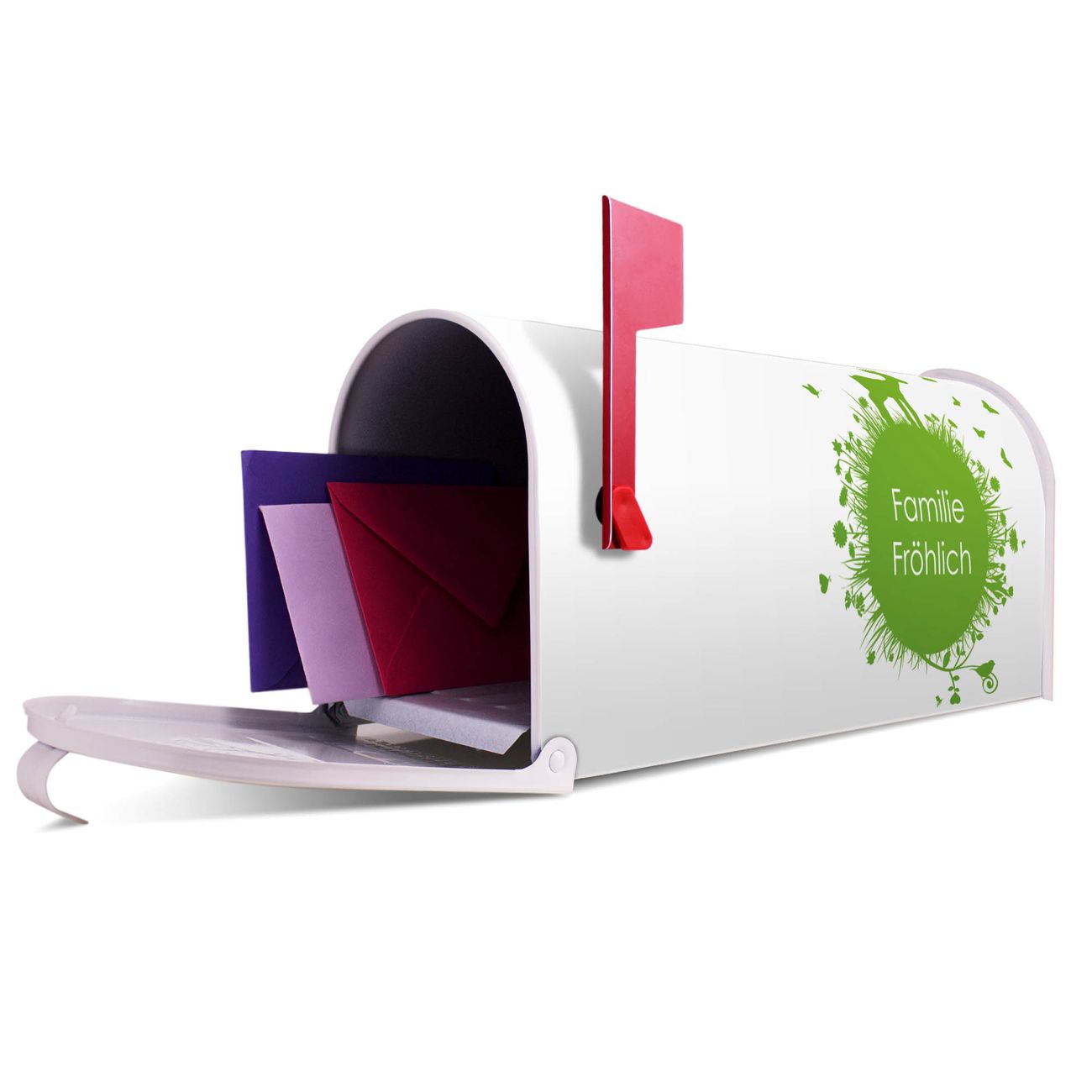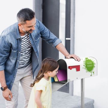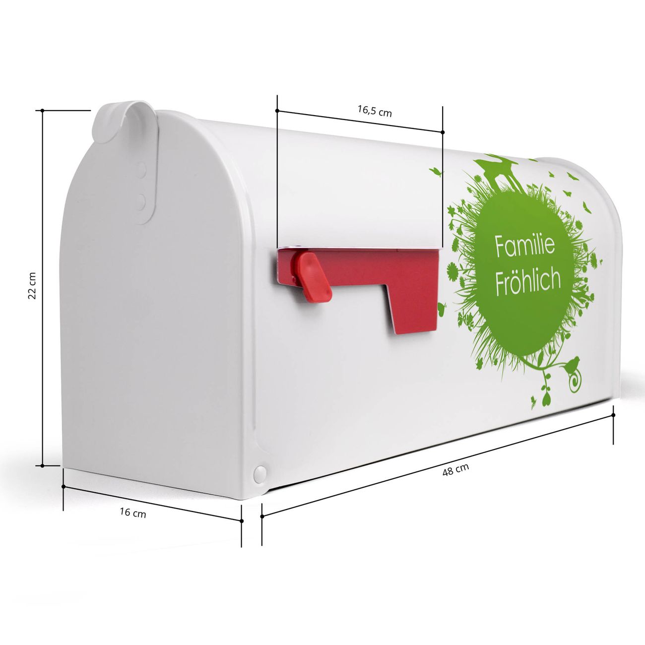 Der amerikanische Briefkasten von banjado mit WT Rehkitz Motiv bietet Ihnen ausreichend Fassungsvermögen, um große A4 Sendungen und Zeitschriften zu empfangen. Die typisch amerikanische rote Fahne zeigt Ihnen an, wenn Sie Post erhalten haben. Die US-Mailbox besteht aus verzinktem Stahlblech welches lackiert wurde und ist 48 x 22 x 16 CM (BxHxT) groß. Die Folie mit Motiv WT Rehkitz besteht aus einer wetter- und UV-resistenten Folie, die mit einem Schutzlaminat überzogen ist, sodass die US Mailbox zusätzlich vor Kratzern geschützt ist. An der Unterkante sind 4 Löcher je Seite um die Mailbox, typisch amerikanisch, an einem Holzpfahl oder einem Zaun zu befestigen. Auf Wunsch können Sie bei uns den passenden Standfuß oder die passende Wandhalterung kaufen um die US-Mailbox sicher zu befestigen. Wir bieten Ihnen ebenfalls Namensschilder, bereits beschriftet oder frei zu beschriften, und verschiedene selbst gestaltete Bitte-Keine-Werbung-Aufkleber.