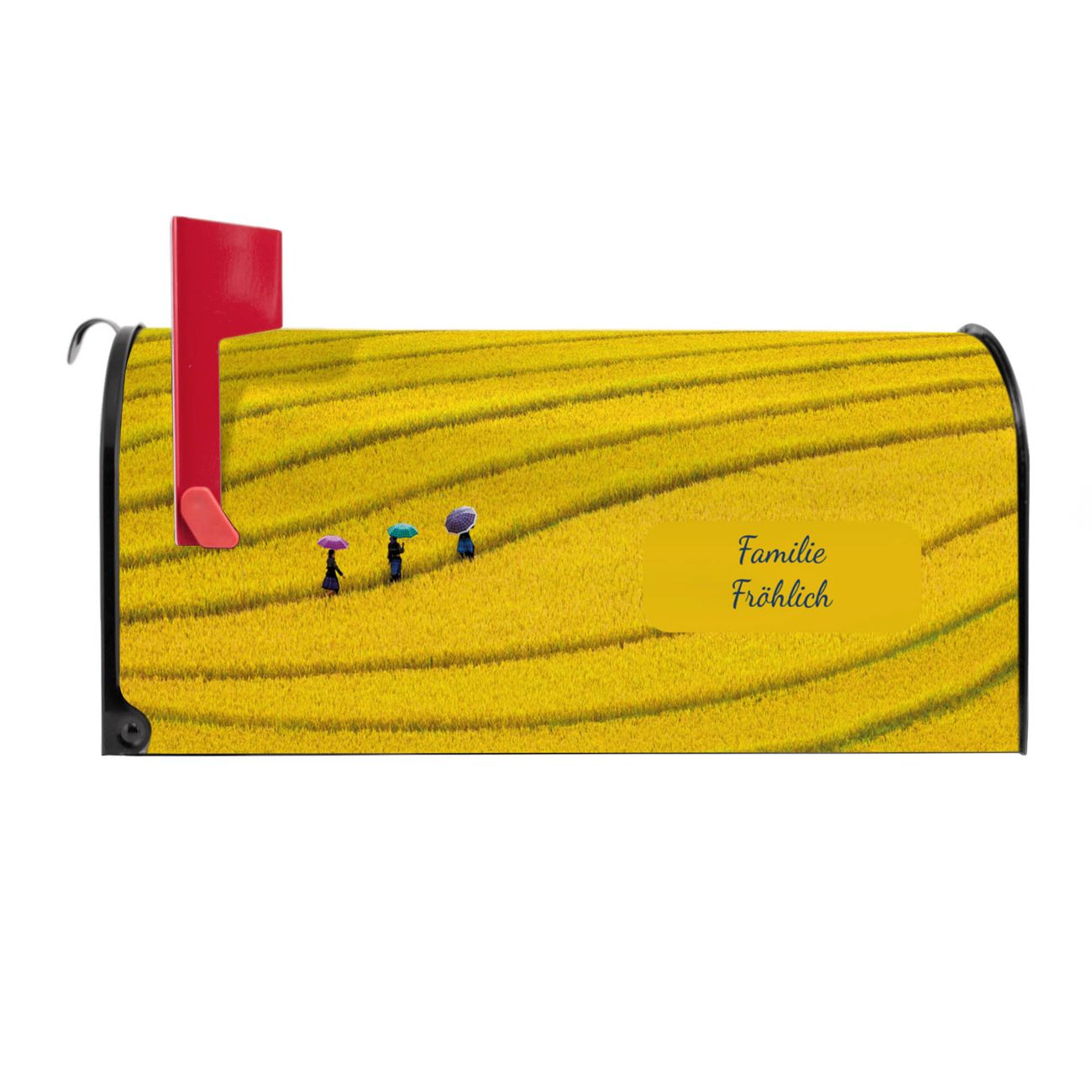 Der amerikanische Briefkasten von banjado mit Reisfeld Vietnam Motiv bietet Ihnen ausreichend Fassungsvermögen, um große A4 Sendungen und Zeitschriften zu empfangen. Die typisch amerikanische rote Fahne zeigt Ihnen an, wenn Sie Post erhalten haben. Die US-Mailbox besteht aus verzinktem Stahlblech welches lackiert wurde und ist 48 x 22 x 16 CM (BxHxT) groß. Die Folie mit Motiv Reisfeld Vietnam besteht aus einer wetter- und UV-resistenten Folie, die mit einem Schutzlaminat überzogen ist, sodass die US Mailbox zusätzlich vor Kratzern geschützt ist. An der Unterkante sind 4 Löcher je Seite um die Mailbox, typisch amerikanisch, an einem Holzpfahl oder einem Zaun zu befestigen. Auf Wunsch können Sie bei uns den passenden Standfuß oder die passende Wandhalterung kaufen um die US-Mailbox sicher zu befestigen. Wir bieten Ihnen ebenfalls Namensschilder, bereits beschriftet oder frei zu beschriften, und verschiedene selbst gestaltete Bitte-Keine-Werbung-Aufkleber.