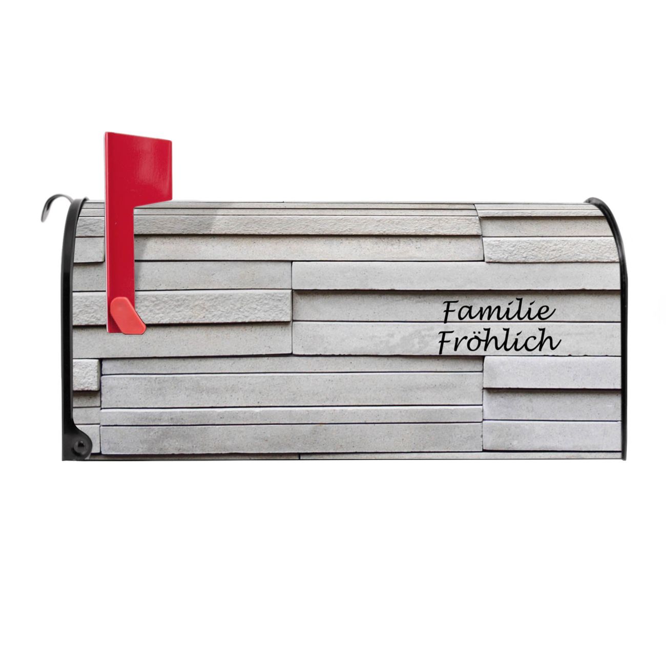 Der amerikanische Briefkasten von banjado mit Relief Motiv bietet Ihnen ausreichend Fassungsvermögen, um große A4 Sendungen und Zeitschriften zu empfangen. Die typisch amerikanische rote Fahne zeigt Ihnen an, wenn Sie Post erhalten haben. Die US-Mailbox besteht aus verzinktem Stahlblech welches lackiert wurde und ist 48 x 22 x 16 CM (BxHxT) groß. Die Folie mit Motiv Relief besteht aus einer wetter- und UV-resistenten Folie, die mit einem Schutzlaminat überzogen ist, sodass die US Mailbox zusätzlich vor Kratzern geschützt ist. An der Unterkante sind 4 Löcher je Seite um die Mailbox, typisch amerikanisch, an einem Holzpfahl oder einem Zaun zu befestigen. Auf Wunsch können Sie bei uns den passenden Standfuß oder die passende Wandhalterung kaufen um die US-Mailbox sicher zu befestigen. Wir bieten Ihnen ebenfalls Namensschilder, bereits beschriftet oder frei zu beschriften, und verschiedene selbst gestaltete Bitte-Keine-Werbung-Aufkleber.
