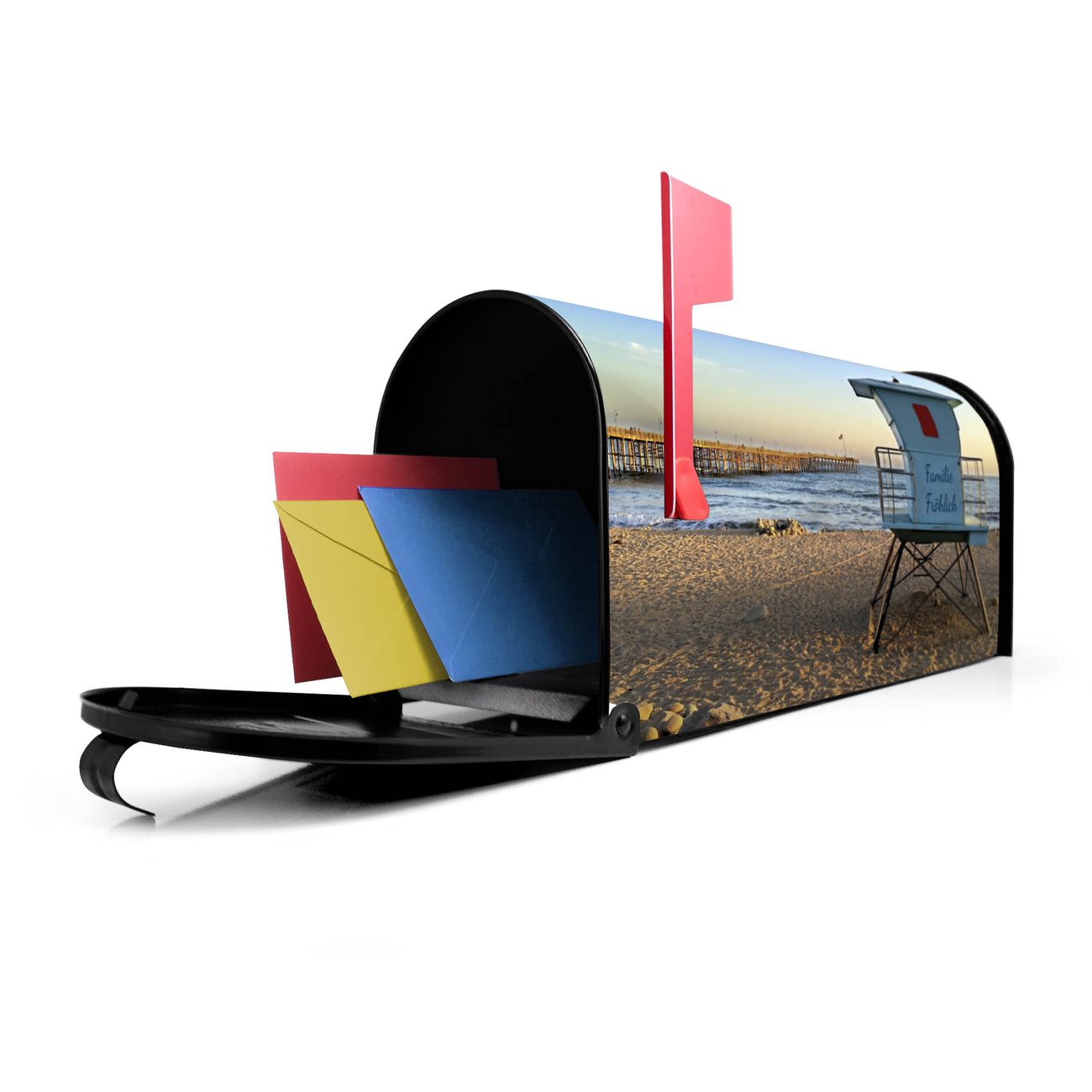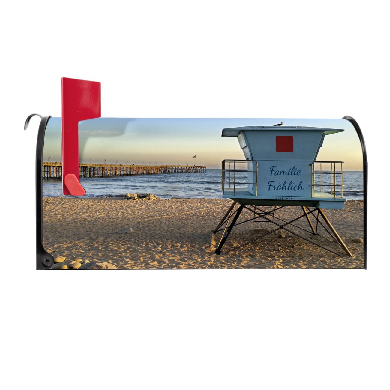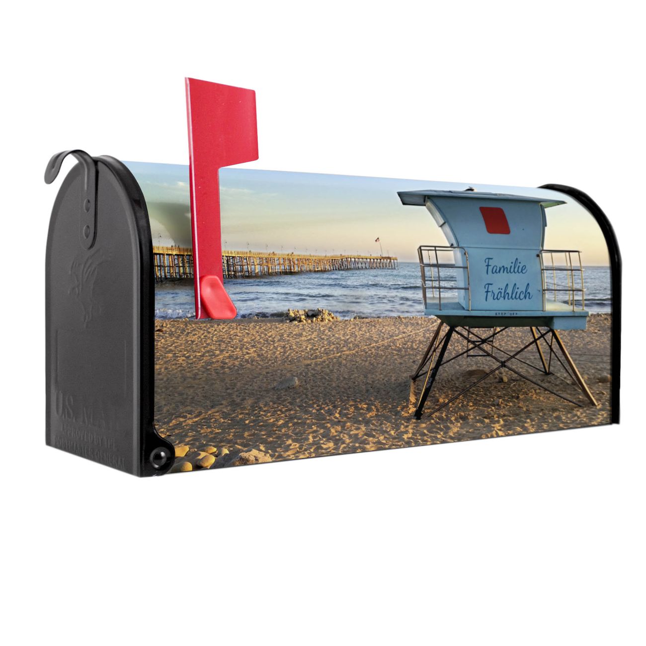 Unser amerikanischer Briefkasten mit dem Motiv Rettungsturm hat ein sehr ansprechendes und ausgefallenes Design, ist in der Grundfarbe weiß, grün oder schwarz erhältlich. Damit entlocken Sie Ihren Nachbarn und dem Postboten immer wieder ein Lächeln. Die Mailbox ist ein Original Import aus Mississippi USA und wird von unserer kleinen Manufaktur in Sachsen von Hand veredelt. Die US-Mailbox bietet ausreichend Platz auch für große Sendungen, eine Fahne die Ihnen Post anzeigt, wetterfestes und äußerst stabiles Material - so macht Post empfangen Freude.