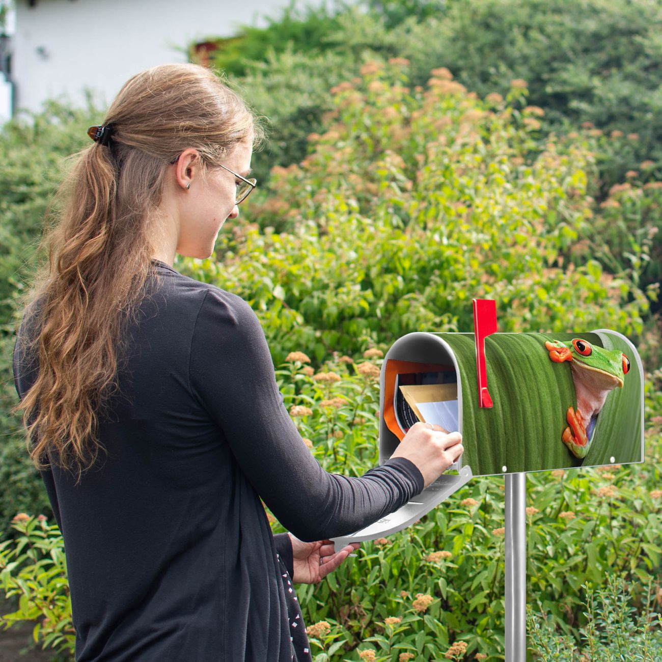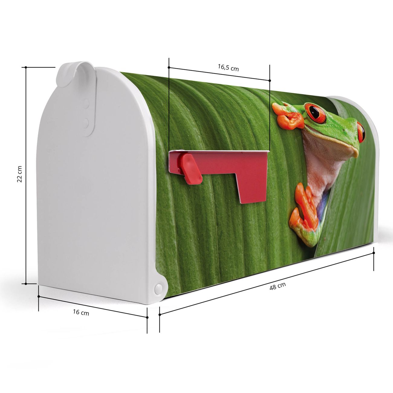Der amerikanische Briefkasten von banjado mit Robin Motiv bietet Ihnen ausreichend Fassungsvermögen, um große A4 Sendungen und Zeitschriften zu empfangen. Die typisch amerikanische rote Fahne zeigt Ihnen an, wenn Sie Post erhalten haben. Die US-Mailbox besteht aus verzinktem Stahlblech welches lackiert wurde und ist 48 x 22 x 16 CM (BxHxT) groß. Die Folie mit Motiv Robin besteht aus einer wetter- und UV-resistenten Folie, die mit einem Schutzlaminat überzogen ist, sodass die US Mailbox zusätzlich vor Kratzern geschützt ist. An der Unterkante sind 4 Löcher je Seite um die Mailbox, typisch amerikanisch, an einem Holzpfahl oder einem Zaun zu befestigen. Auf Wunsch können Sie bei uns den passenden Standfuß oder die passende Wandhalterung kaufen um die US-Mailbox sicher zu befestigen. Wir bieten Ihnen ebenfalls Namensschilder, bereits beschriftet oder frei zu beschriften, und verschiedene selbst gestaltete Bitte-Keine-Werbung-Aufkleber.