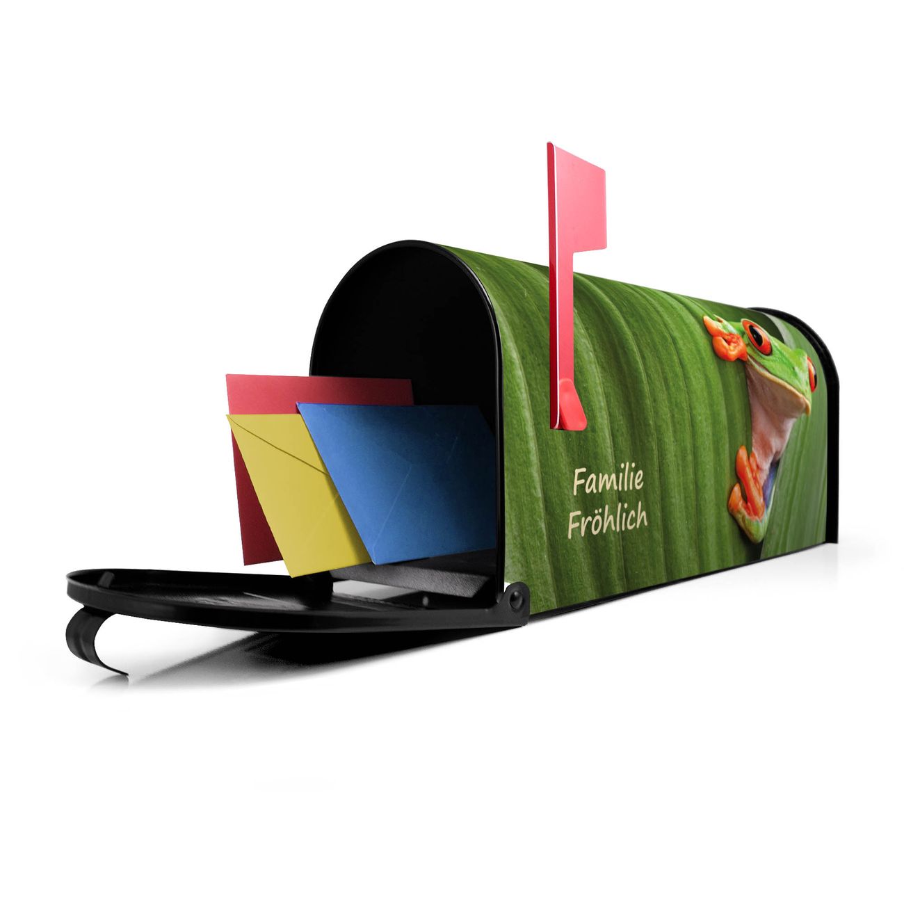 Der amerikanische Briefkasten von banjado mit Robin Motiv bietet Ihnen ausreichend Fassungsvermögen, um große A4 Sendungen und Zeitschriften zu empfangen. Die typisch amerikanische rote Fahne zeigt Ihnen an, wenn Sie Post erhalten haben. Die US-Mailbox besteht aus verzinktem Stahlblech welches lackiert wurde und ist 48 x 22 x 16 CM (BxHxT) groß. Die Folie mit Motiv Robin besteht aus einer wetter- und UV-resistenten Folie, die mit einem Schutzlaminat überzogen ist, sodass die US Mailbox zusätzlich vor Kratzern geschützt ist. An der Unterkante sind 4 Löcher je Seite um die Mailbox, typisch amerikanisch, an einem Holzpfahl oder einem Zaun zu befestigen. Auf Wunsch können Sie bei uns den passenden Standfuß oder die passende Wandhalterung kaufen um die US-Mailbox sicher zu befestigen. Wir bieten Ihnen ebenfalls Namensschilder, bereits beschriftet oder frei zu beschriften, und verschiedene selbst gestaltete Bitte-Keine-Werbung-Aufkleber.
