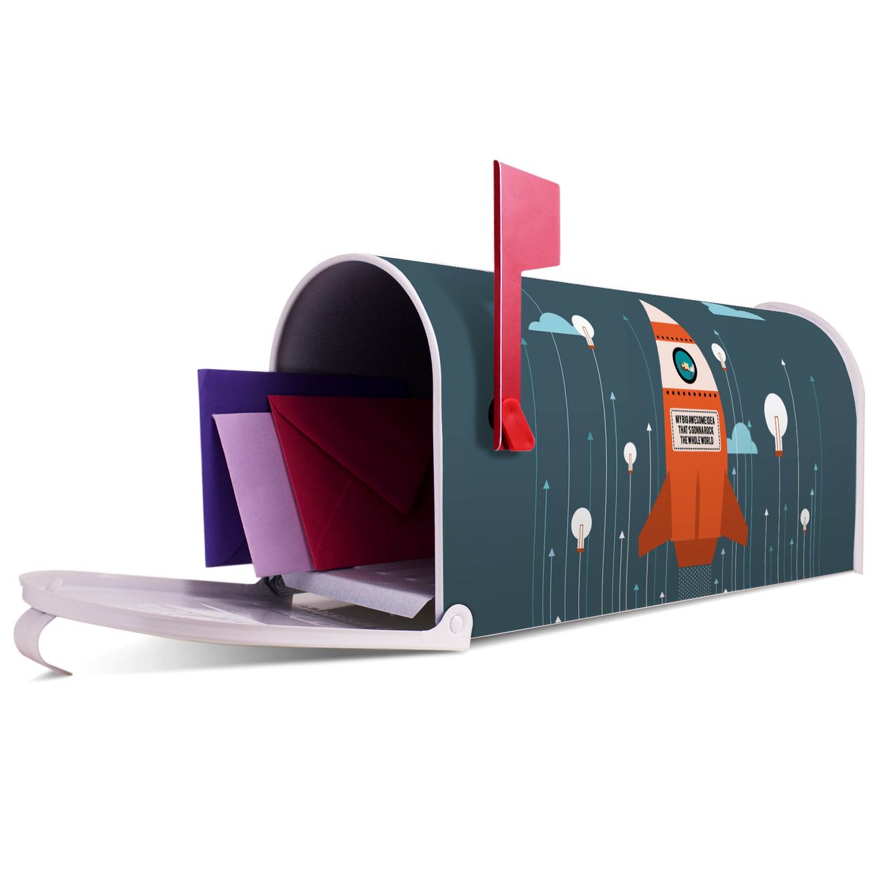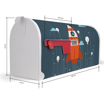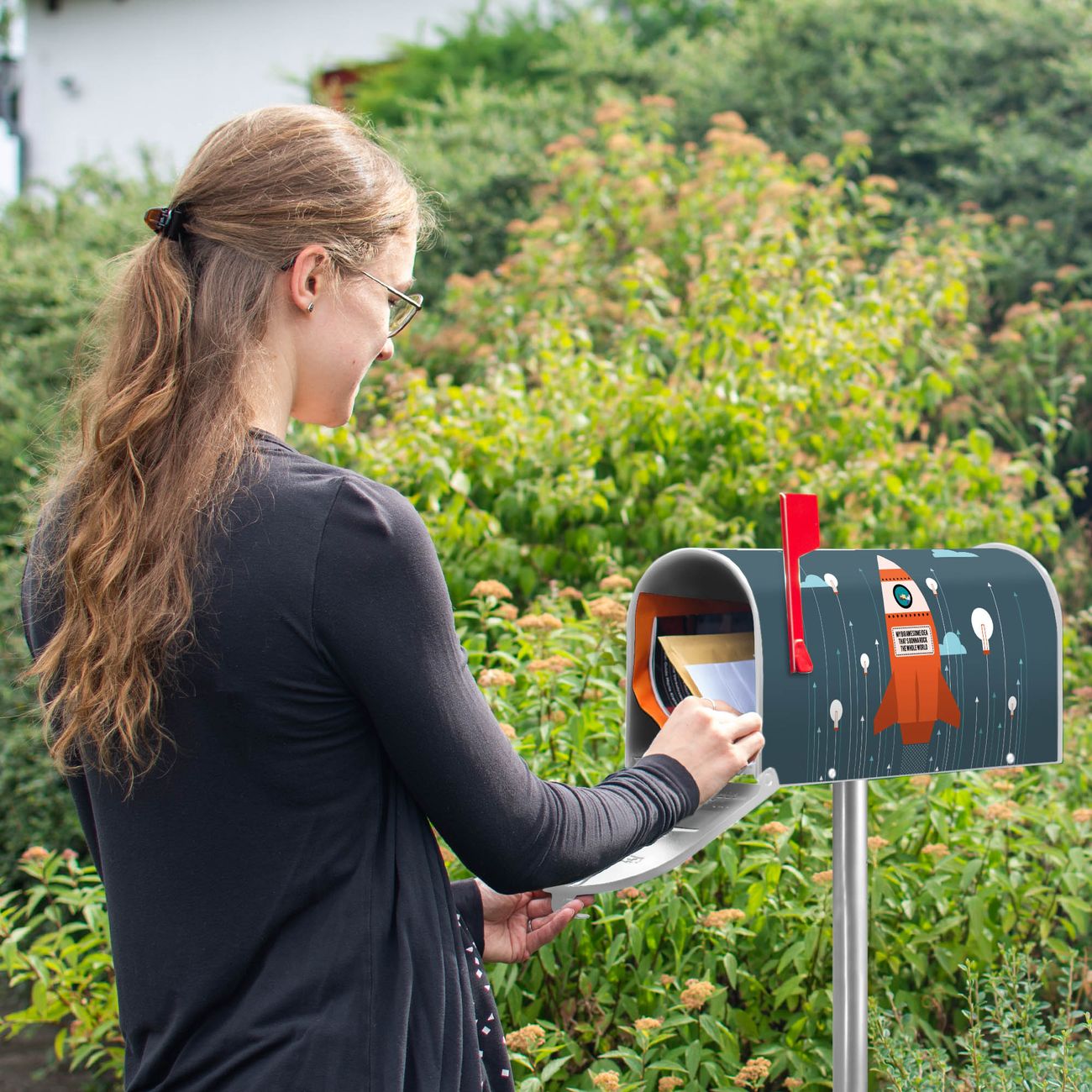 Der amerikanische Briefkasten von banjado mit Rock the World Motiv bietet Ihnen ausreichend Fassungsvermögen, um große A4 Sendungen und Zeitschriften zu empfangen. Die typisch amerikanische rote Fahne zeigt Ihnen an, wenn Sie Post erhalten haben. Die US-Mailbox besteht aus verzinktem Stahlblech welches lackiert wurde und ist 48 x 22 x 16 CM (BxHxT) groß. Die Folie mit Motiv Rock the World besteht aus einer wetter- und UV-resistenten Folie, die mit einem Schutzlaminat überzogen ist, sodass die US Mailbox zusätzlich vor Kratzern geschützt ist. An der Unterkante sind 4 Löcher je Seite um die Mailbox, typisch amerikanisch, an einem Holzpfahl oder einem Zaun zu befestigen. Auf Wunsch können Sie bei uns den passenden Standfuß oder die passende Wandhalterung kaufen um die US-Mailbox sicher zu befestigen. Wir bieten Ihnen ebenfalls Namensschilder, bereits beschriftet oder frei zu beschriften, und verschiedene selbst gestaltete Bitte-Keine-Werbung-Aufkleber.