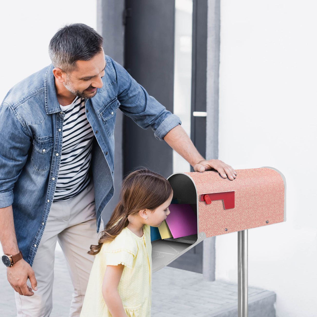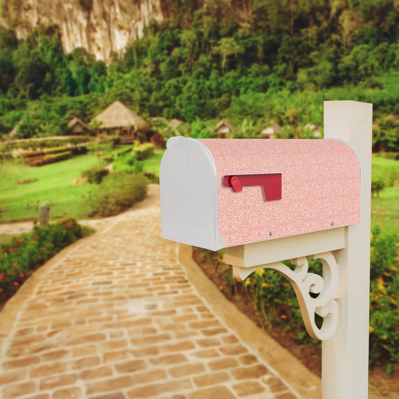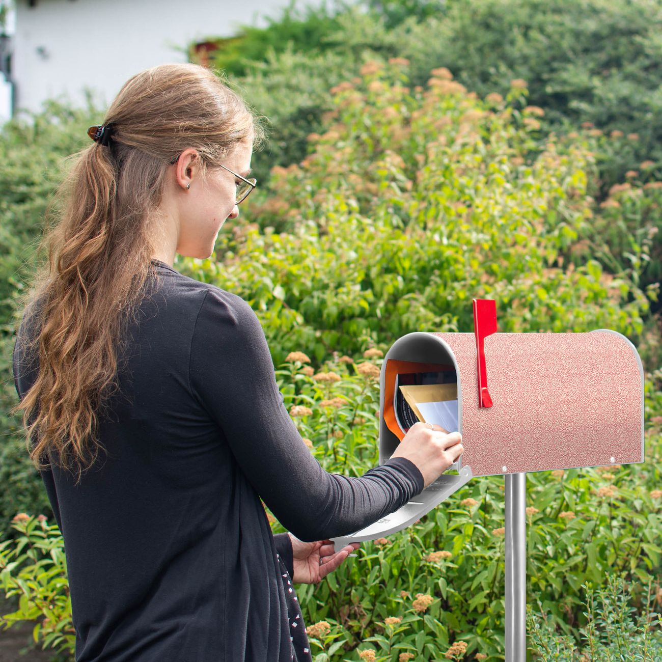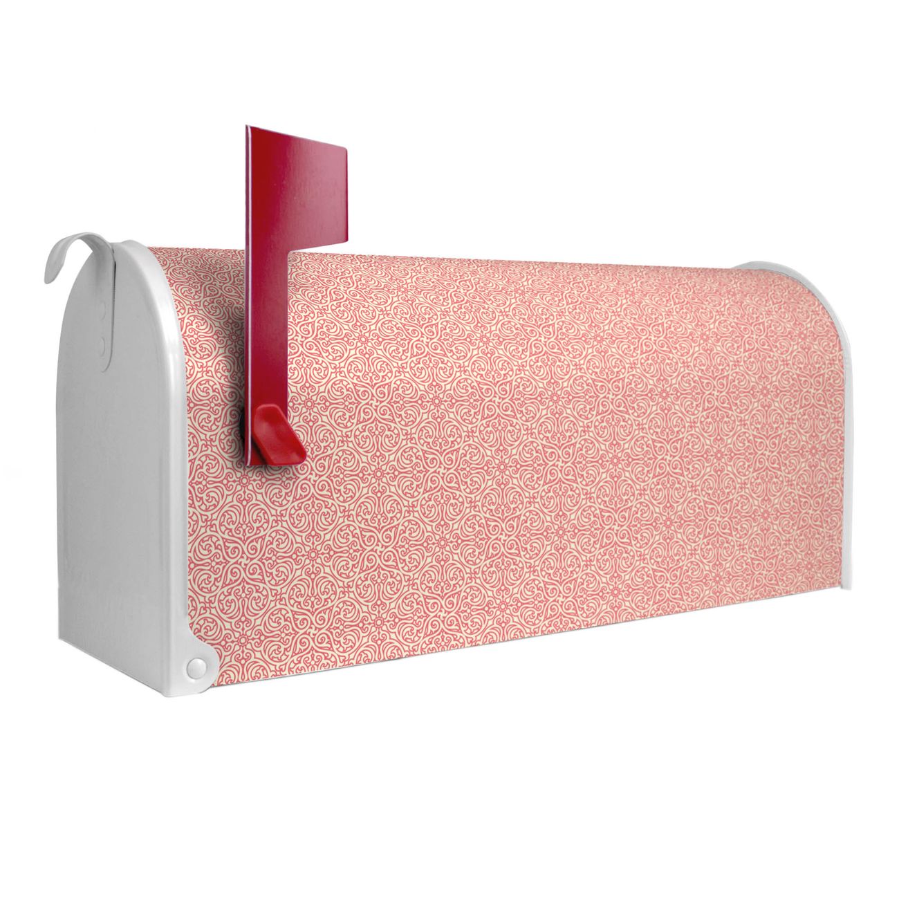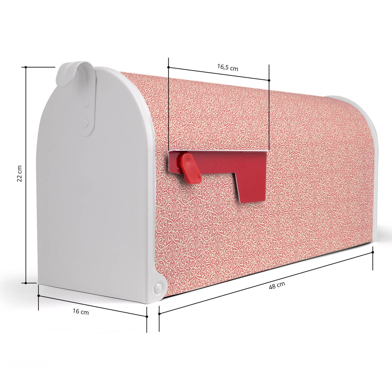 Der amerikanische Briefkasten von banjado mit Rosa Arabesque Motiv bietet Ihnen ausreichend Fassungsvermögen, um große A4 Sendungen und Zeitschriften zu empfangen. Die typisch amerikanische rote Fahne zeigt Ihnen an, wenn Sie Post erhalten haben. Die US-Mailbox besteht aus verzinktem Stahlblech welches lackiert wurde und ist 48 x 22 x 16 CM (BxHxT) groß. Die Folie mit Motiv Rosa Arabesque besteht aus einer wetter- und UV-resistenten Folie, die mit einem Schutzlaminat überzogen ist, sodass die US Mailbox zusätzlich vor Kratzern geschützt ist. An der Unterkante sind 4 Löcher je Seite um die Mailbox, typisch amerikanisch, an einem Holzpfahl oder einem Zaun zu befestigen. Auf Wunsch können Sie bei uns den passenden Standfuß oder die passende Wandhalterung kaufen um die US-Mailbox sicher zu befestigen. Wir bieten Ihnen ebenfalls Namensschilder, bereits beschriftet oder frei zu beschriften, und verschiedene selbst gestaltete Bitte-Keine-Werbung-Aufkleber.