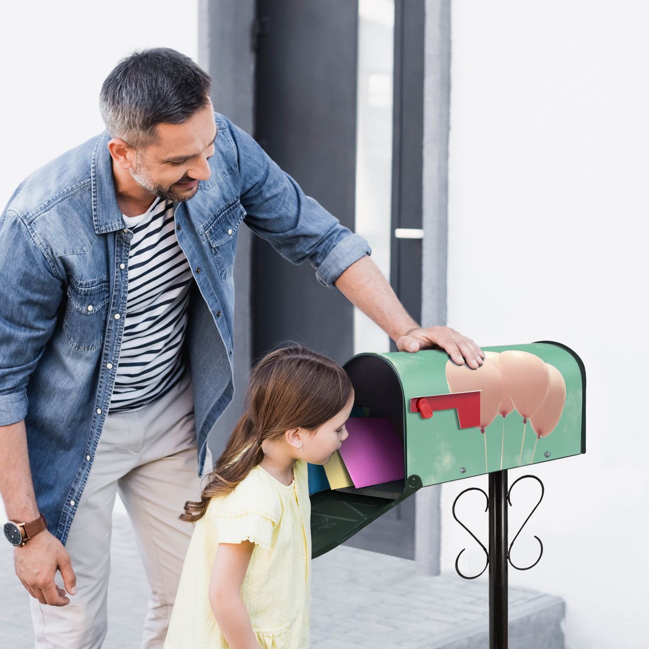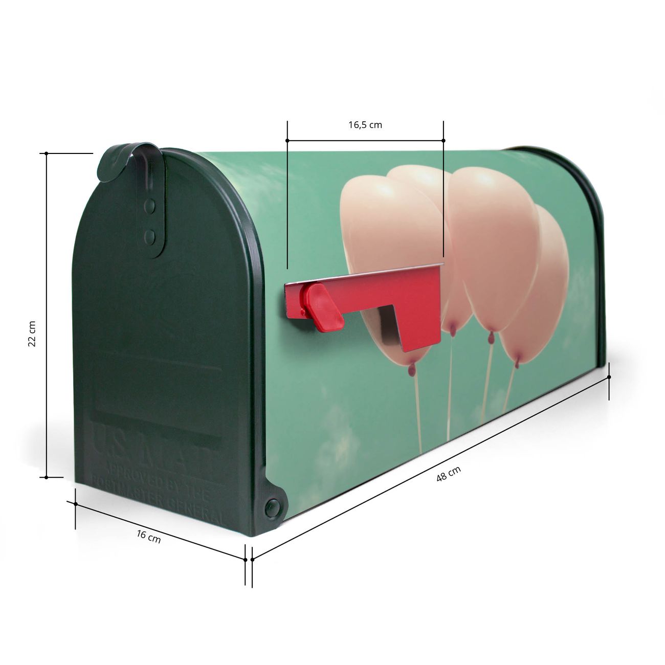 Unser amerikanischer Briefkasten mit dem Motiv Rosa Ballons hat ein sehr ansprechendes und ausgefallenes Design, ist in der Grundfarbe weiß, grün oder schwarz erhältlich. Damit entlocken Sie Ihren Nachbarn und dem Postboten immer wieder ein Lächeln. Die Mailbox ist ein Original Import aus Mississippi USA und wird von unserer kleinen Manufaktur in Sachsen von Hand veredelt. Die US-Mailbox bietet ausreichend Platz auch für große Sendungen, eine Fahne die Ihnen Post anzeigt, wetterfestes und äußerst stabiles Material - so macht Post empfangen Freude.