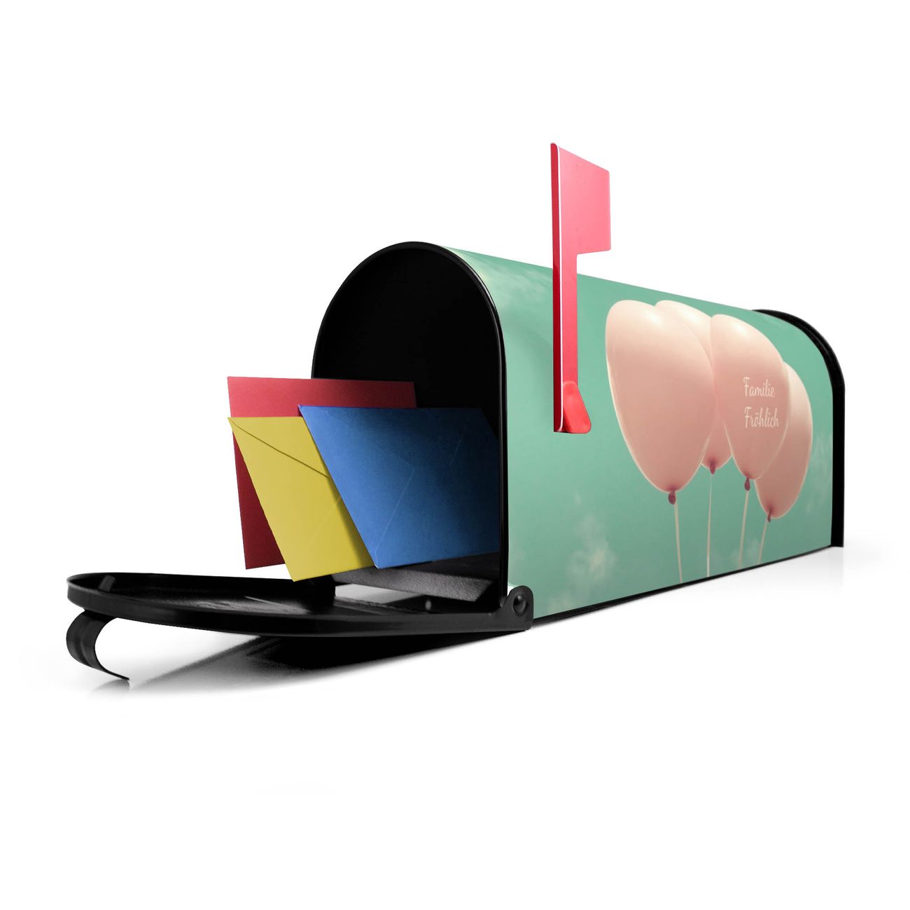 Unser amerikanischer Briefkasten mit dem Motiv Rosa Ballons hat ein sehr ansprechendes und ausgefallenes Design, ist in der Grundfarbe weiß, grün oder schwarz erhältlich. Damit entlocken Sie Ihren Nachbarn und dem Postboten immer wieder ein Lächeln. Die Mailbox ist ein Original Import aus Mississippi USA und wird von unserer kleinen Manufaktur in Sachsen von Hand veredelt. Die US-Mailbox bietet ausreichend Platz auch für große Sendungen, eine Fahne die Ihnen Post anzeigt, wetterfestes und äußerst stabiles Material - so macht Post empfangen Freude.