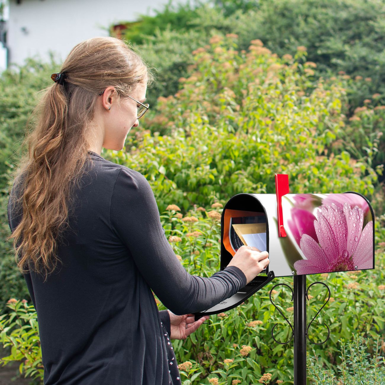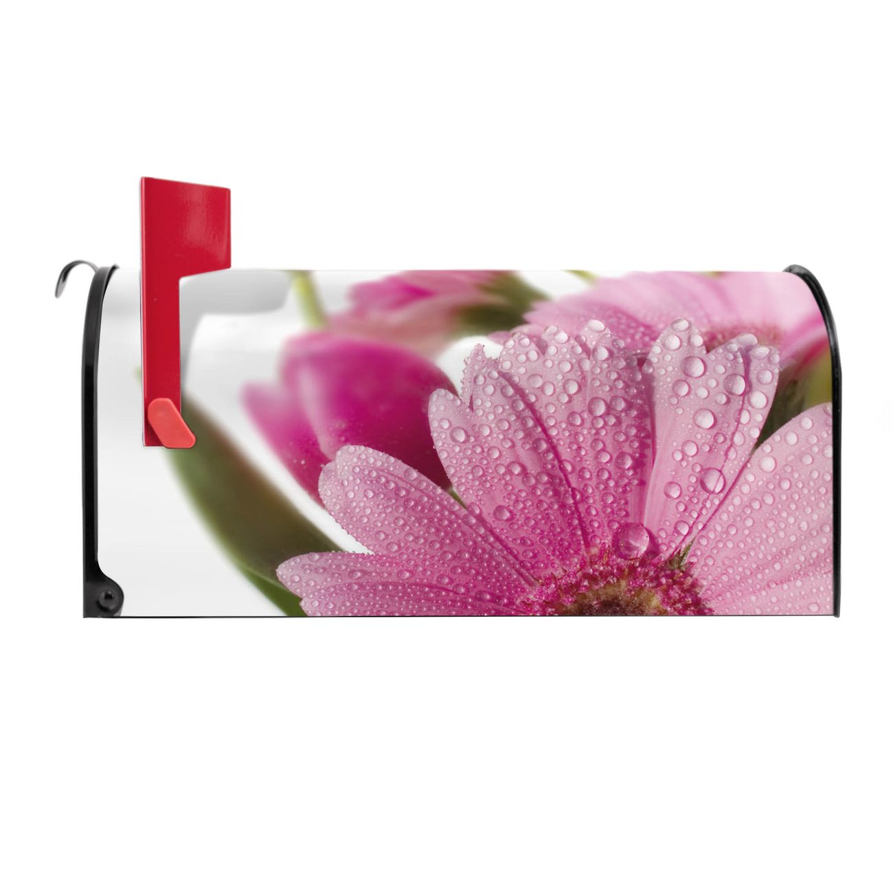 Unser amerikanischer Briefkasten mit dem Motiv Rosa Gerbera hat ein sehr ansprechendes und ausgefallenes Design, ist in der Grundfarbe weiß, grün oder schwarz erhältlich. Damit entlocken Sie Ihren Nachbarn und dem Postboten immer wieder ein Lächeln. Die Mailbox ist ein Original Import aus Mississippi USA und wird von unserer kleinen Manufaktur in Sachsen von Hand veredelt. Die US-Mailbox bietet ausreichend Platz auch für große Sendungen, eine Fahne die Ihnen Post anzeigt, wetterfestes und äußerst stabiles Material - so macht Post empfangen Freude.