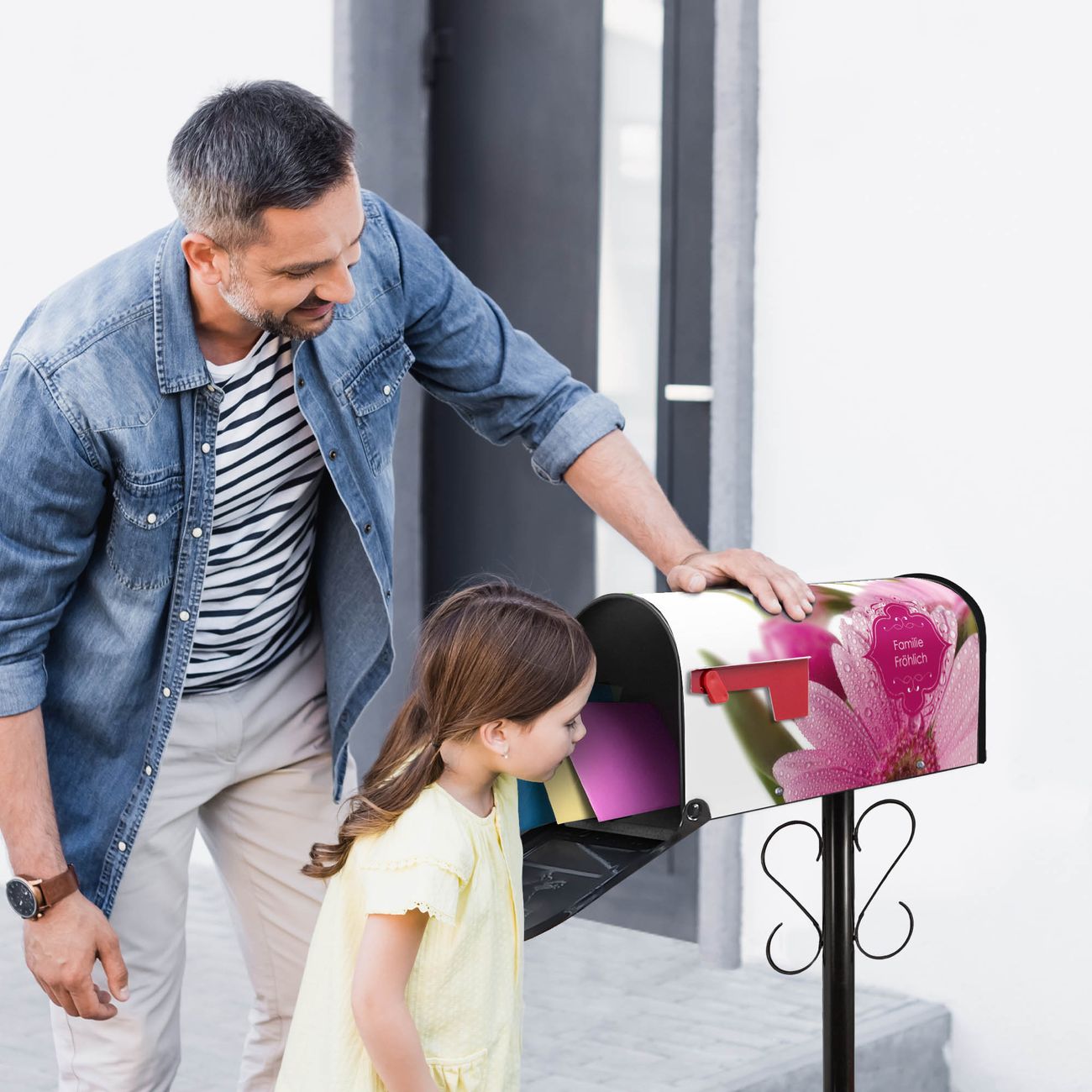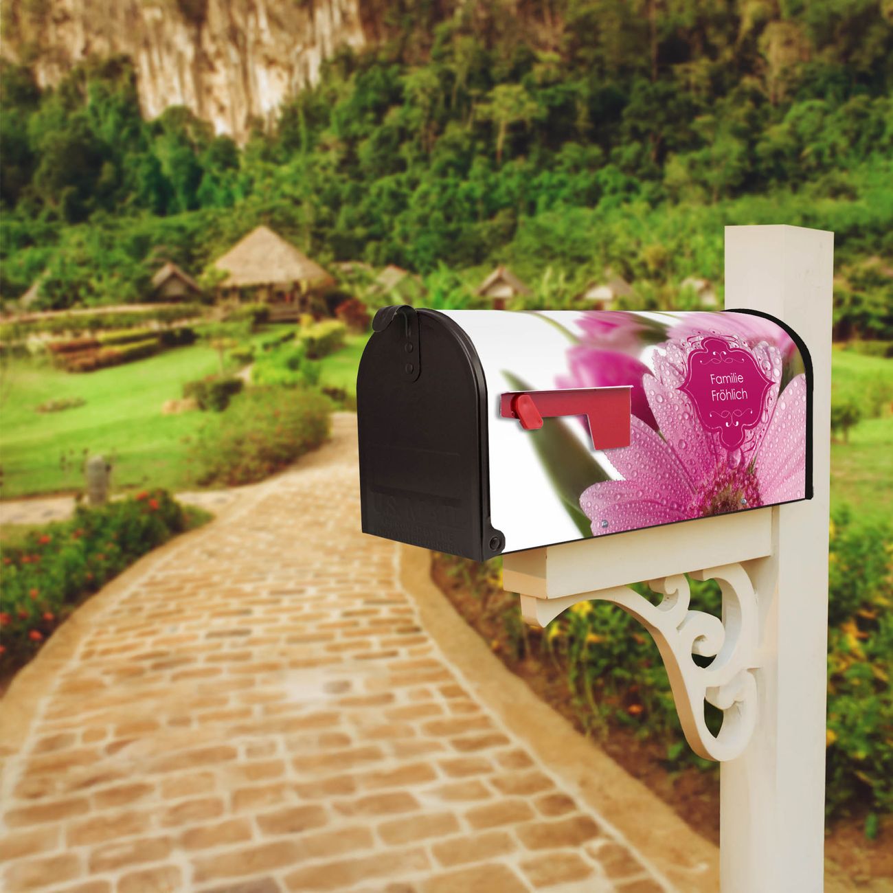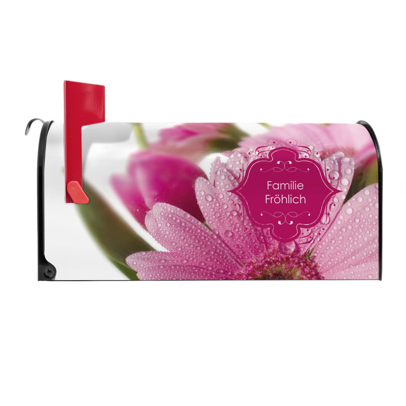 Unser amerikanischer Briefkasten mit dem Motiv Rosa Gerbera hat ein sehr ansprechendes und ausgefallenes Design, ist in der Grundfarbe weiß, grün oder schwarz erhältlich. Damit entlocken Sie Ihren Nachbarn und dem Postboten immer wieder ein Lächeln. Die Mailbox ist ein Original Import aus Mississippi USA und wird von unserer kleinen Manufaktur in Sachsen von Hand veredelt. Die US-Mailbox bietet ausreichend Platz auch für große Sendungen, eine Fahne die Ihnen Post anzeigt, wetterfestes und äußerst stabiles Material - so macht Post empfangen Freude.