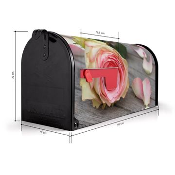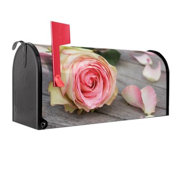 Der amerikanische Briefkasten von banjado mit Rosa Rose Motiv bietet Ihnen ausreichend Fassungsvermögen, um große A4 Sendungen und Zeitschriften zu empfangen. Die typisch amerikanische rote Fahne zeigt Ihnen an, wenn Sie Post erhalten haben. Die US-Mailbox besteht aus verzinktem Stahlblech welches lackiert wurde und ist 48 x 22 x 16 CM (BxHxT) groß. Die Folie mit Motiv Rosa Rose besteht aus einer wetter- und UV-resistenten Folie, die mit einem Schutzlaminat überzogen ist, sodass die US Mailbox zusätzlich vor Kratzern geschützt ist. An der Unterkante sind 4 Löcher je Seite um die Mailbox, typisch amerikanisch, an einem Holzpfahl oder einem Zaun zu befestigen. Auf Wunsch können Sie bei uns den passenden Standfuß oder die passende Wandhalterung kaufen um die US-Mailbox sicher zu befestigen. Wir bieten Ihnen ebenfalls Namensschilder, bereits beschriftet oder frei zu beschriften, und verschiedene selbst gestaltete Bitte-Keine-Werbung-Aufkleber.