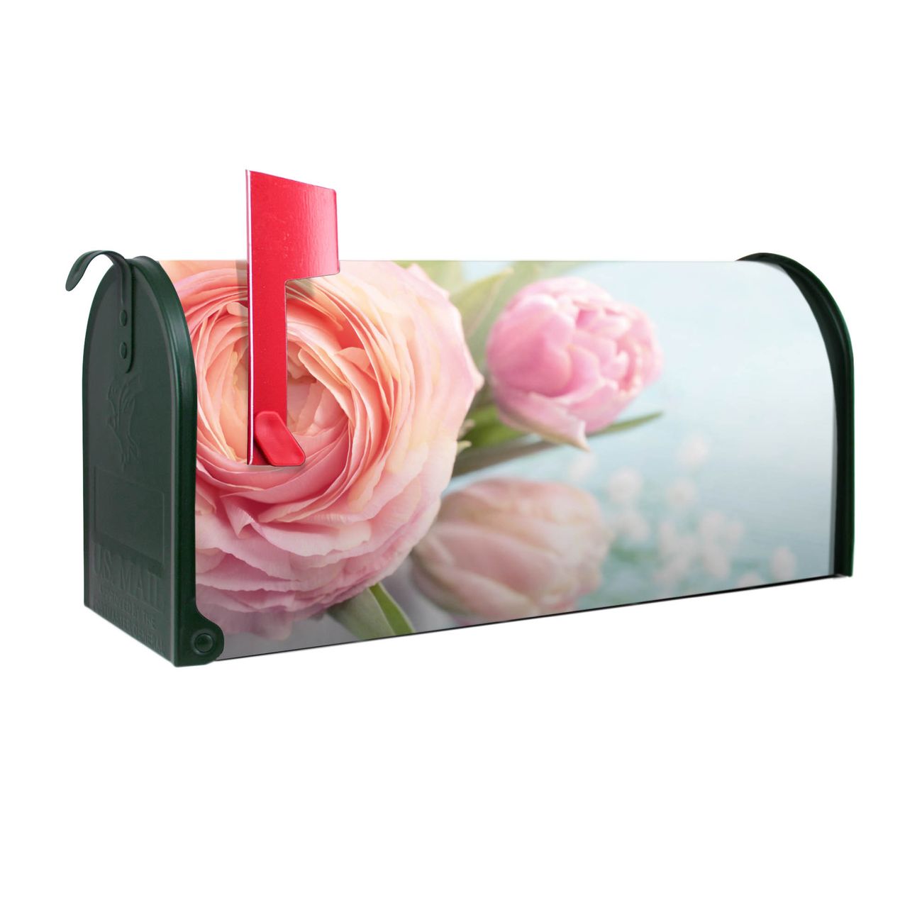 Unser amerikanischer Briefkasten mit dem Motiv Rosa Tulpe hat ein sehr ansprechendes und ausgefallenes Design, ist in der Grundfarbe weiß, grün oder schwarz erhältlich. Damit entlocken Sie Ihren Nachbarn und dem Postboten immer wieder ein Lächeln. Die Mailbox ist ein Original Import aus Mississippi USA und wird von unserer kleinen Manufaktur in Sachsen von Hand veredelt. Die US-Mailbox bietet ausreichend Platz auch für große Sendungen, eine Fahne die Ihnen Post anzeigt, wetterfestes und äußerst stabiles Material - so macht Post empfangen Freude.
