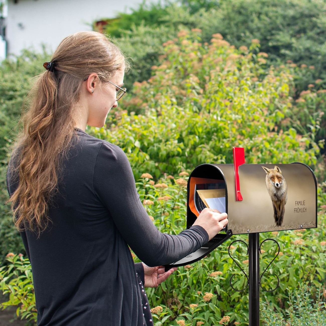 Unser amerikanischer Briefkasten mit dem Motiv Rosalie hat ein sehr ansprechendes und ausgefallenes Design, ist in der Grundfarbe weiß, grün oder schwarz erhältlich. Damit entlocken Sie Ihren Nachbarn und dem Postboten immer wieder ein Lächeln. Die Mailbox ist ein Original Import aus Mississippi USA und wird von unserer kleinen Manufaktur in Sachsen von Hand veredelt. Die US-Mailbox bietet ausreichend Platz auch für große Sendungen, eine Fahne die Ihnen Post anzeigt, wetterfestes und äußerst stabiles Material - so macht Post empfangen Freude.