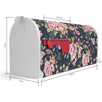 Der amerikanische Briefkasten von banjado mit Rosen Auf Anthrazit Motiv bietet Ihnen ausreichend Fassungsvermögen, um große A4 Sendungen und Zeitschriften zu empfangen. Die typisch amerikanische rote Fahne zeigt Ihnen an, wenn Sie Post erhalten haben. Die US-Mailbox besteht aus verzinktem Stahlblech welches lackiert wurde und ist 48 x 22 x 16 CM (BxHxT) groß. Die Folie mit Motiv Rosen Auf Anthrazit besteht aus einer wetter- und UV-resistenten Folie, die mit einem Schutzlaminat überzogen ist, sodass die US Mailbox zusätzlich vor Kratzern geschützt ist. An der Unterkante sind 4 Löcher je Seite um die Mailbox, typisch amerikanisch, an einem Holzpfahl oder einem Zaun zu befestigen. Auf Wunsch können Sie bei uns den passenden Standfuß oder die passende Wandhalterung kaufen um die US-Mailbox sicher zu befestigen. Wir bieten Ihnen ebenfalls Namensschilder, bereits beschriftet oder frei zu beschriften, und verschiedene selbst gestaltete Bitte-Keine-Werbung-Aufkleber.