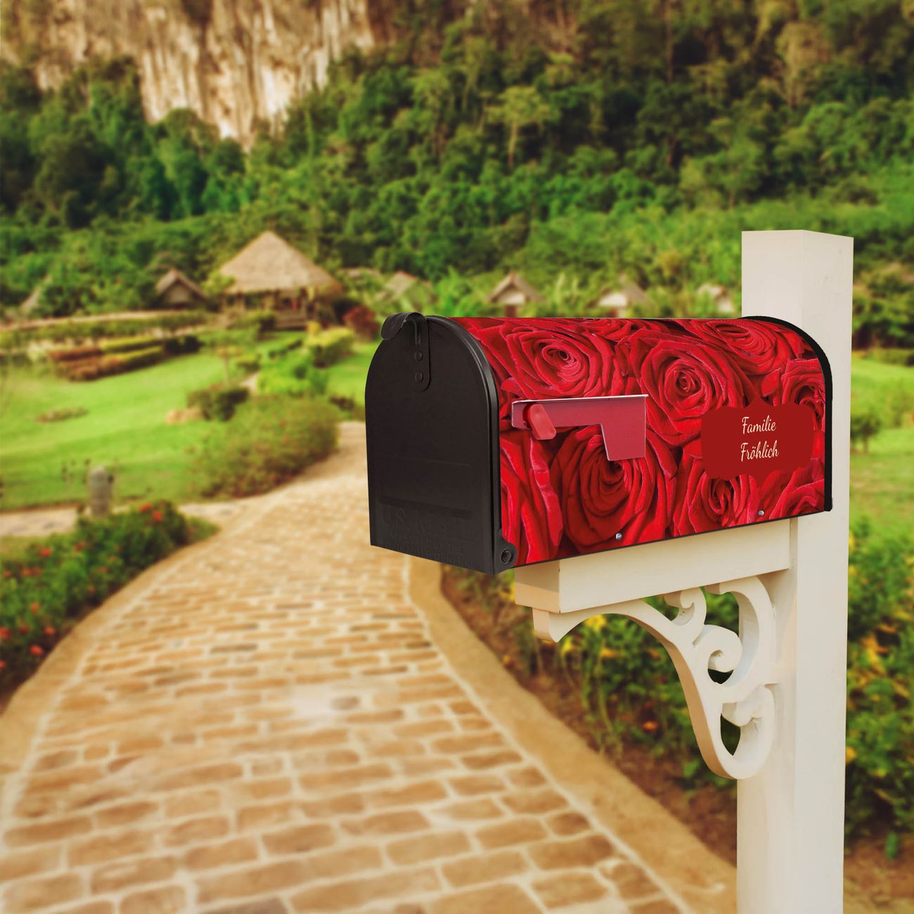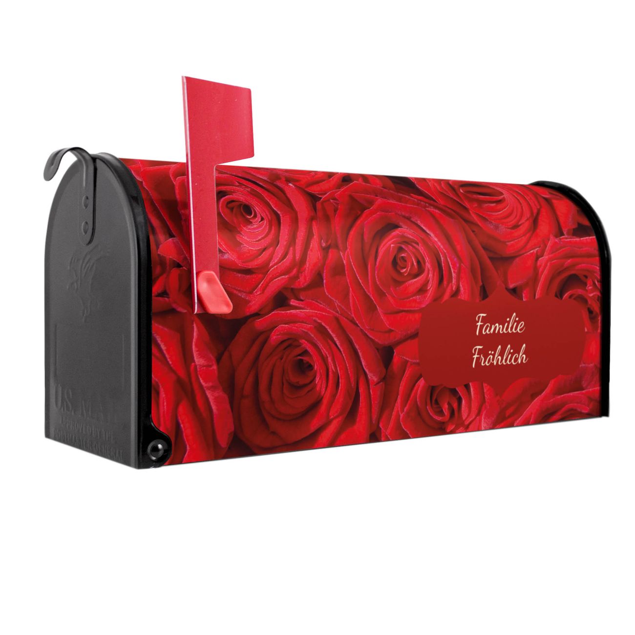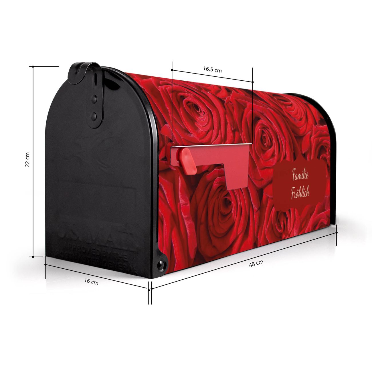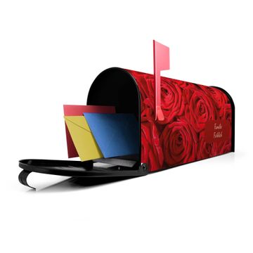 Der amerikanische Briefkasten von banjado mit Rosenbett Motiv bietet Ihnen ausreichend Fassungsvermögen, um große A4 Sendungen und Zeitschriften zu empfangen. Die typisch amerikanische rote Fahne zeigt Ihnen an, wenn Sie Post erhalten haben. Die US-Mailbox besteht aus verzinktem Stahlblech welches lackiert wurde und ist 48 x 22 x 16 CM (BxHxT) groß. Die Folie mit Motiv Rosenbett besteht aus einer wetter- und UV-resistenten Folie, die mit einem Schutzlaminat überzogen ist, sodass die US Mailbox zusätzlich vor Kratzern geschützt ist. An der Unterkante sind 4 Löcher je Seite um die Mailbox, typisch amerikanisch, an einem Holzpfahl oder einem Zaun zu befestigen. Auf Wunsch können Sie bei uns den passenden Standfuß oder die passende Wandhalterung kaufen um die US-Mailbox sicher zu befestigen. Wir bieten Ihnen ebenfalls Namensschilder, bereits beschriftet oder frei zu beschriften, und verschiedene selbst gestaltete Bitte-Keine-Werbung-Aufkleber.