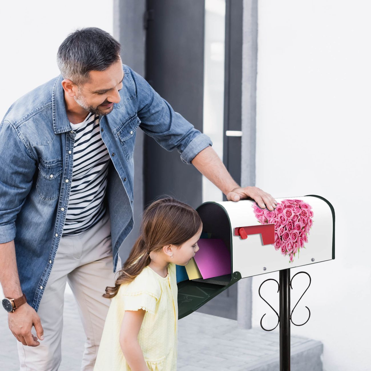 Unser amerikanischer Briefkasten mit dem Motiv Rosenherz hat ein sehr ansprechendes und ausgefallenes Design, ist in der Grundfarbe weiß, grün oder schwarz erhältlich. Damit entlocken Sie Ihren Nachbarn und dem Postboten immer wieder ein Lächeln. Die Mailbox ist ein Original Import aus Mississippi USA und wird von unserer kleinen Manufaktur in Sachsen von Hand veredelt. Die US-Mailbox bietet ausreichend Platz auch für große Sendungen, eine Fahne die Ihnen Post anzeigt, wetterfestes und äußerst stabiles Material - so macht Post empfangen Freude.