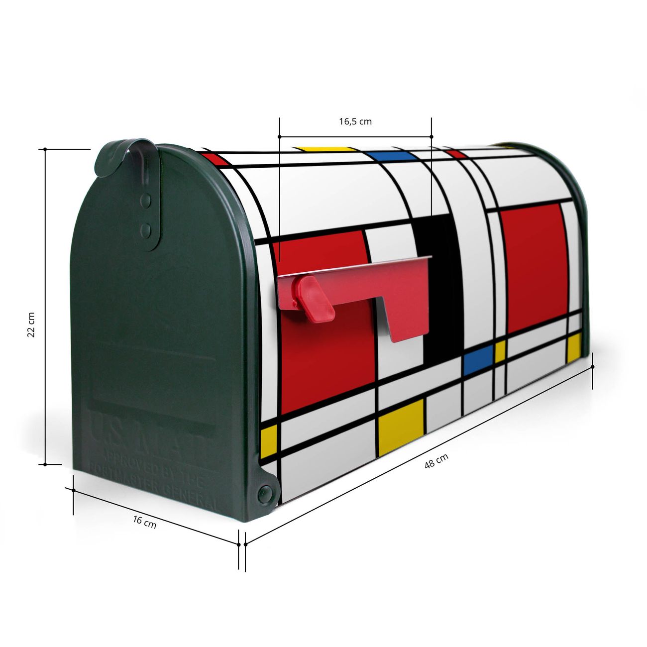 Unser amerikanischer Briefkasten mit dem Motiv Rot Gelb Blau hat ein sehr ansprechendes und ausgefallenes Design, ist in der Grundfarbe weiß, grün oder schwarz erhältlich. Damit entlocken Sie Ihren Nachbarn und dem Postboten immer wieder ein Lächeln. Die Mailbox ist ein Original Import aus Mississippi USA und wird von unserer kleinen Manufaktur in Sachsen von Hand veredelt. Die US-Mailbox bietet ausreichend Platz auch für große Sendungen, eine Fahne die Ihnen Post anzeigt, wetterfestes und äußerst stabiles Material - so macht Post empfangen Freude.