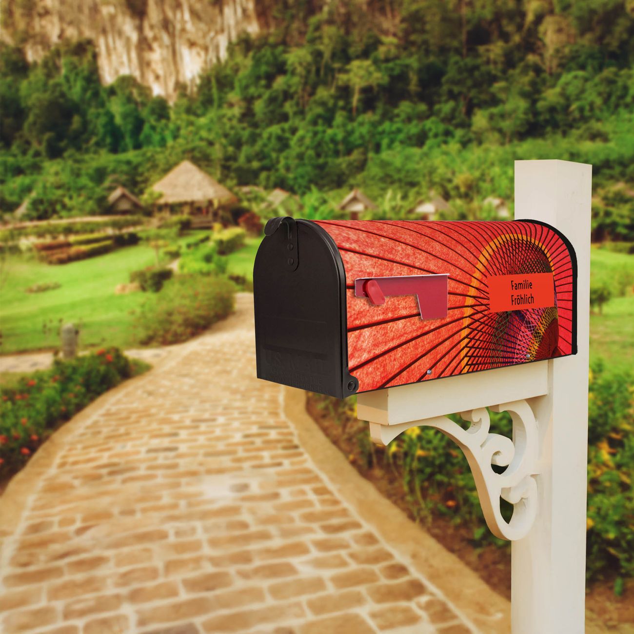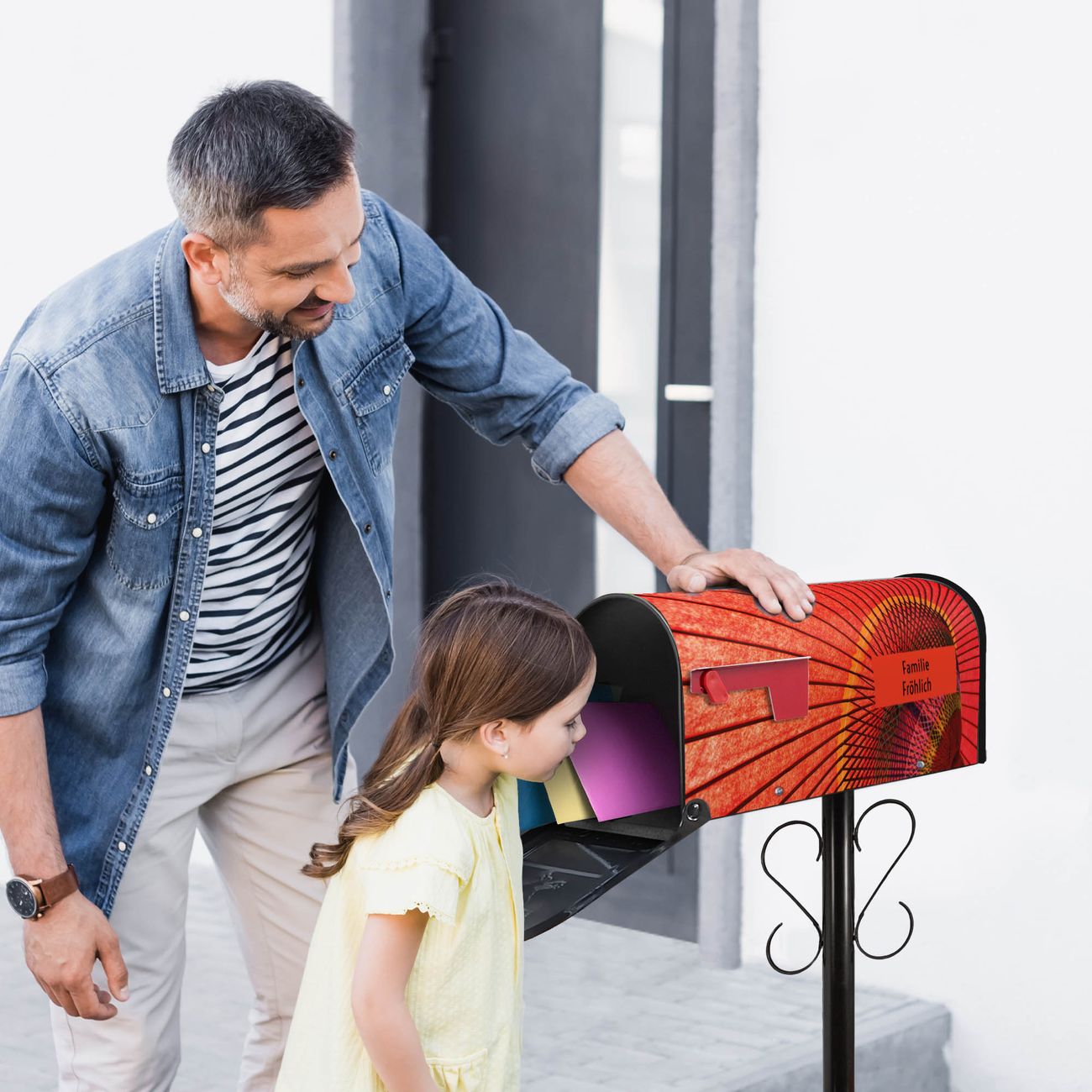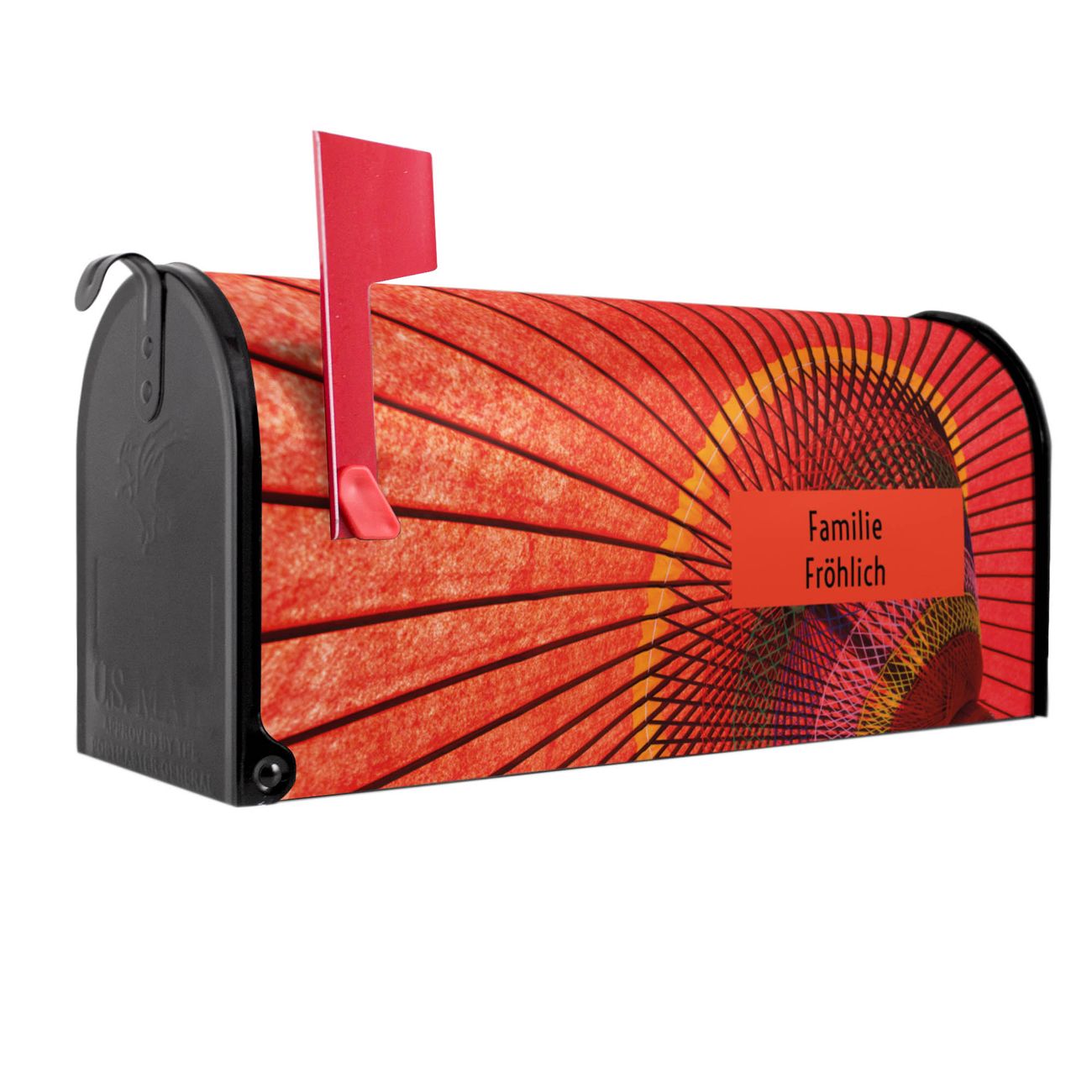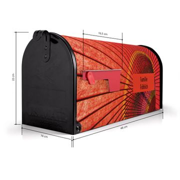 Der amerikanische Briefkasten von banjado mit Roter Schirm Motiv bietet Ihnen ausreichend Fassungsvermögen, um große A4 Sendungen und Zeitschriften zu empfangen. Die typisch amerikanische rote Fahne zeigt Ihnen an, wenn Sie Post erhalten haben. Die US-Mailbox besteht aus verzinktem Stahlblech welches lackiert wurde und ist 48 x 22 x 16 CM (BxHxT) groß. Die Folie mit Motiv Roter Schirm besteht aus einer wetter- und UV-resistenten Folie, die mit einem Schutzlaminat überzogen ist, sodass die US Mailbox zusätzlich vor Kratzern geschützt ist. An der Unterkante sind 4 Löcher je Seite um die Mailbox, typisch amerikanisch, an einem Holzpfahl oder einem Zaun zu befestigen. Auf Wunsch können Sie bei uns den passenden Standfuß oder die passende Wandhalterung kaufen um die US-Mailbox sicher zu befestigen. Wir bieten Ihnen ebenfalls Namensschilder, bereits beschriftet oder frei zu beschriften, und verschiedene selbst gestaltete Bitte-Keine-Werbung-Aufkleber.