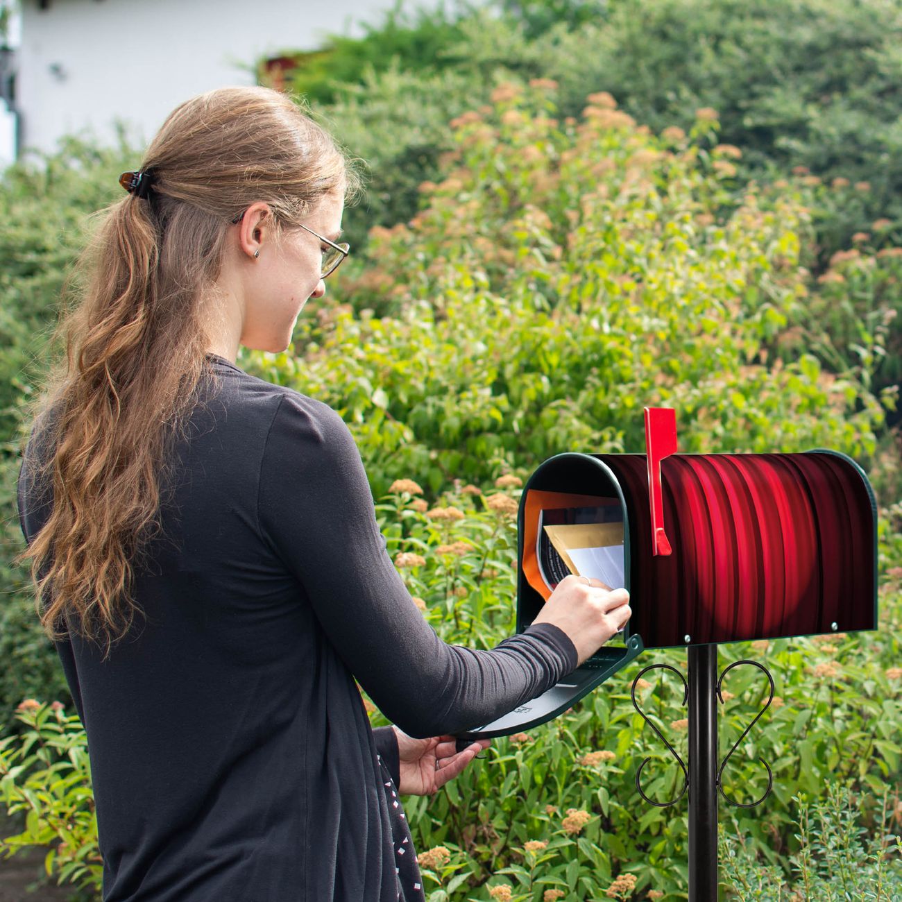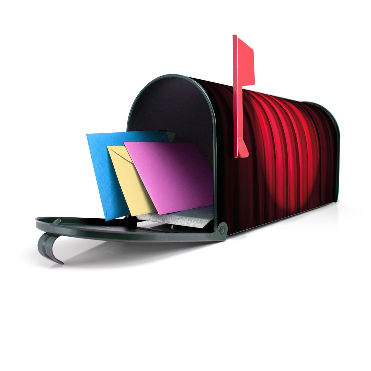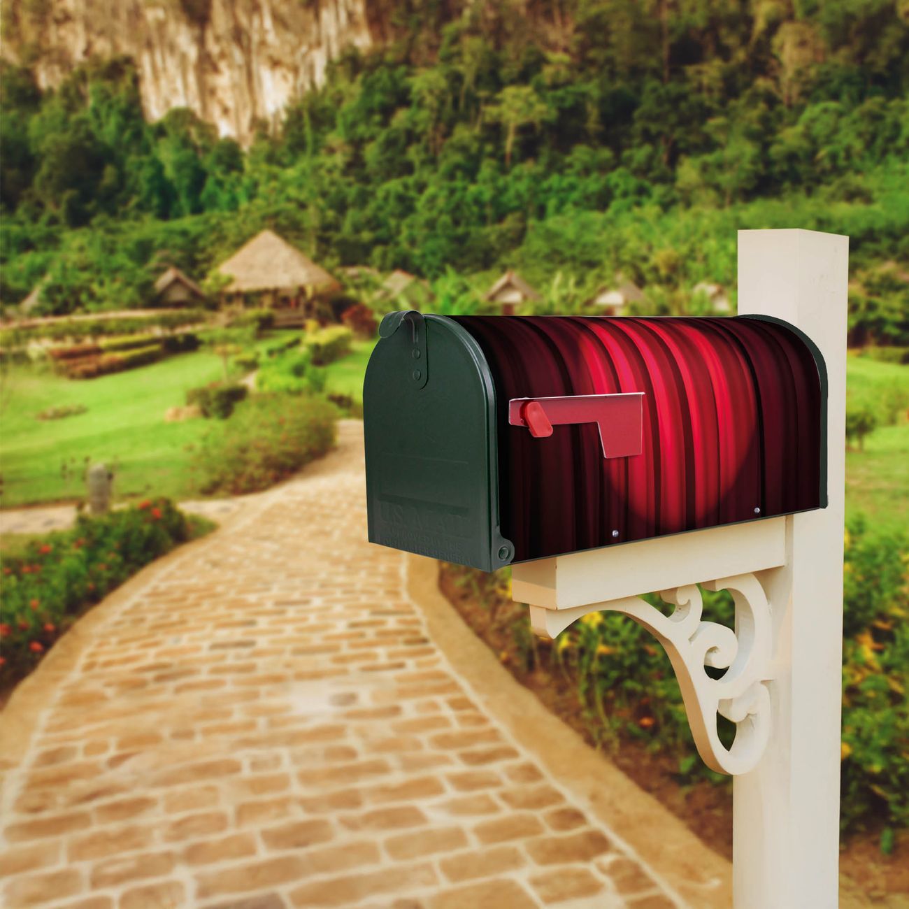Unser amerikanischer Briefkasten mit dem Motiv Roter Vorhang hat ein sehr ansprechendes und ausgefallenes Design, ist in der Grundfarbe weiß, grün oder schwarz erhältlich. Damit entlocken Sie Ihren Nachbarn und dem Postboten immer wieder ein Lächeln. Die Mailbox ist ein Original Import aus Mississippi USA und wird von unserer kleinen Manufaktur in Sachsen von Hand veredelt. Die US-Mailbox bietet ausreichend Platz auch für große Sendungen, eine Fahne die Ihnen Post anzeigt, wetterfestes und äußerst stabiles Material - so macht Post empfangen Freude.