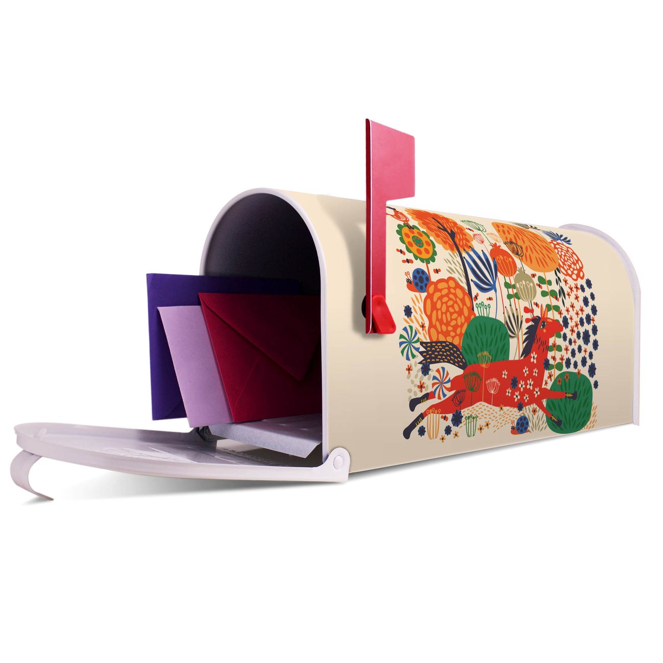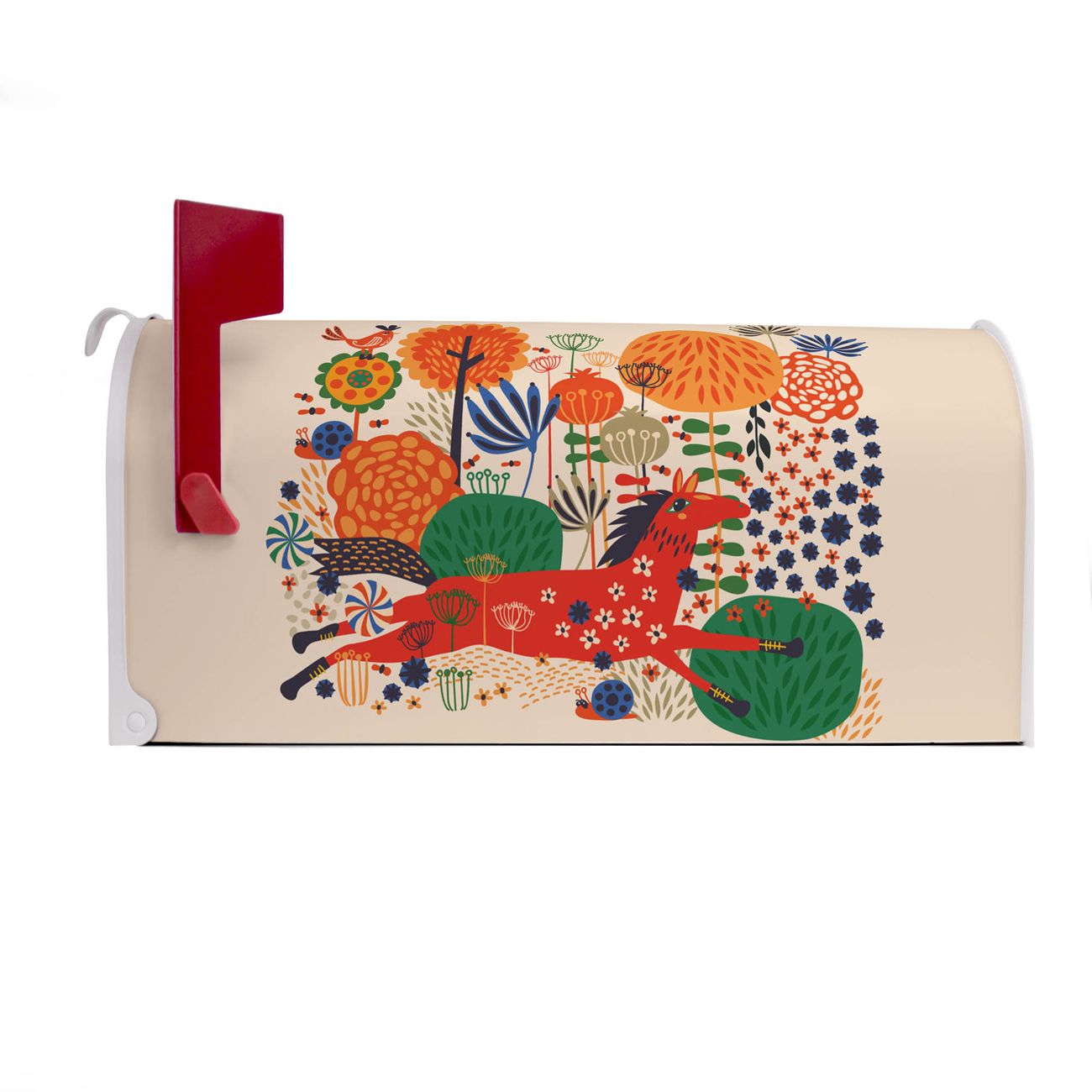 Unser amerikanischer Briefkasten mit dem Motiv Rotes Pferd hat ein sehr ansprechendes und ausgefallenes Design, ist in der Grundfarbe weiß, grün oder schwarz erhältlich. Damit entlocken Sie Ihren Nachbarn und dem Postboten immer wieder ein Lächeln. Die Mailbox ist ein Original Import aus Mississippi USA und wird von unserer kleinen Manufaktur in Sachsen von Hand veredelt. Die US-Mailbox bietet ausreichend Platz auch für große Sendungen, eine Fahne die Ihnen Post anzeigt, wetterfestes und äußerst stabiles Material - so macht Post empfangen Freude.